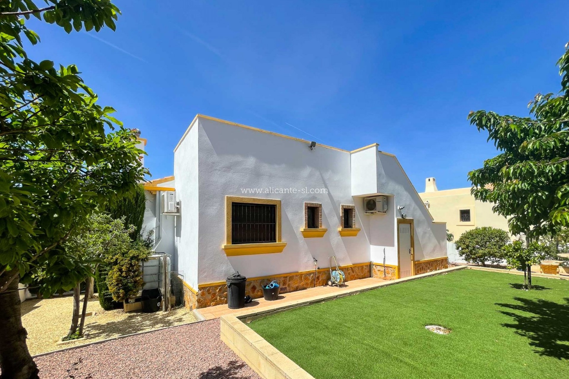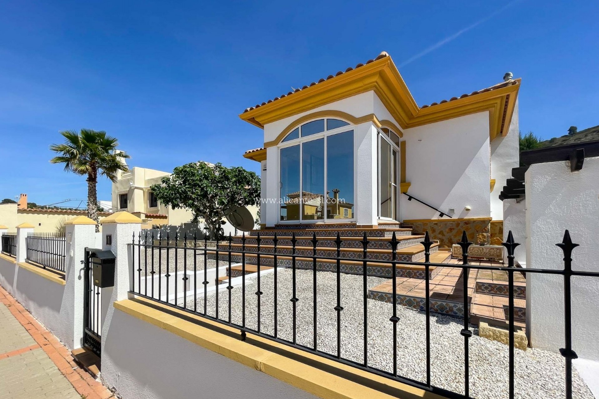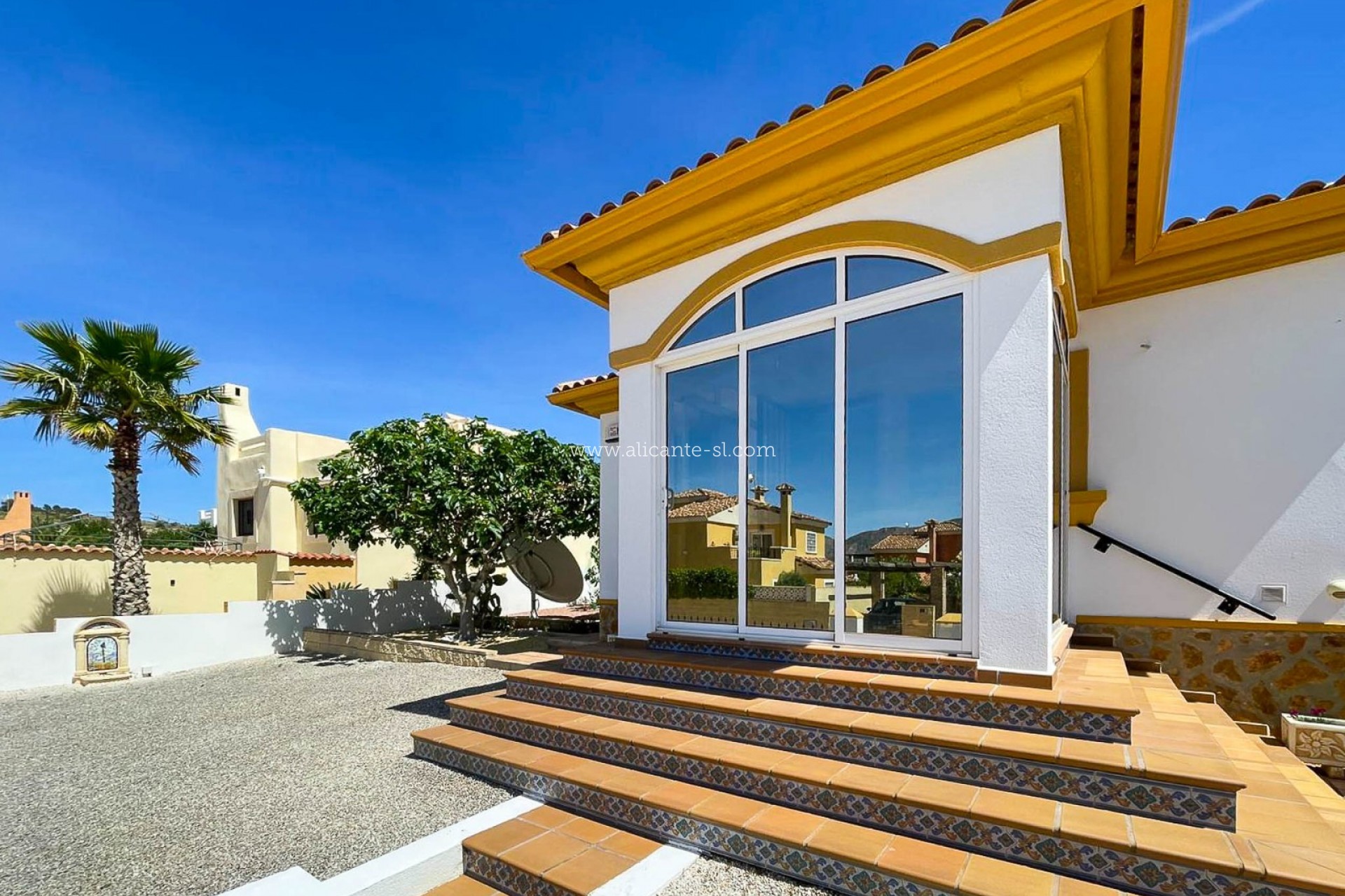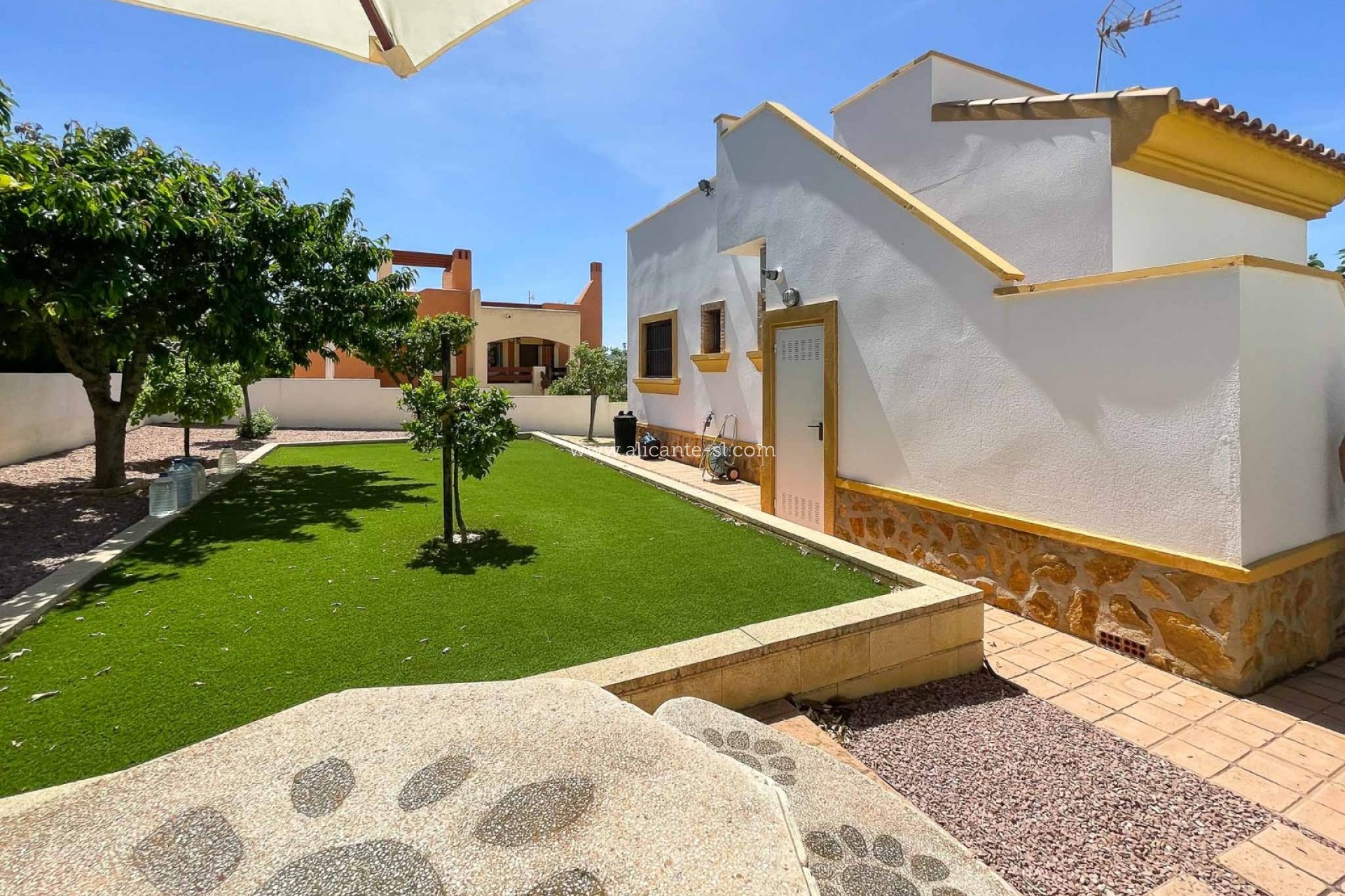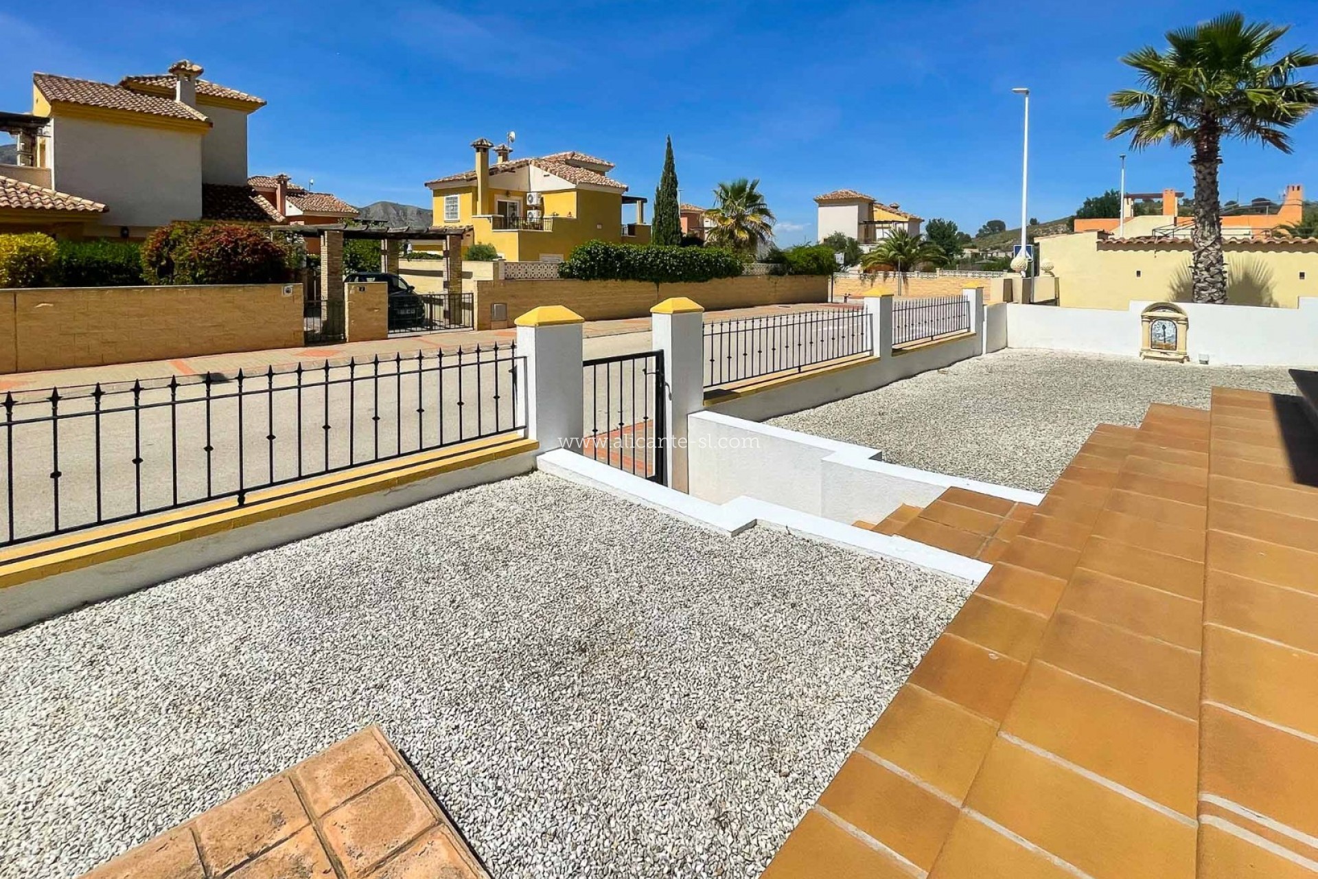 Draußen gibt es Fahrzeugeingangstore, die auf eine private Auffahrt mit Carport führen, einen großen, gut gepflegten Garten hinter dem Haus mit einer Reihe von Pflanzen und Obstbäumen, darunter; Apfel, Mandarine, Feige, Zitrone, Kirsche, Birne und Kumquat ... Es gibt auch eine große Dachterrasse mit schöner Aussicht über das Hondon-Tal.