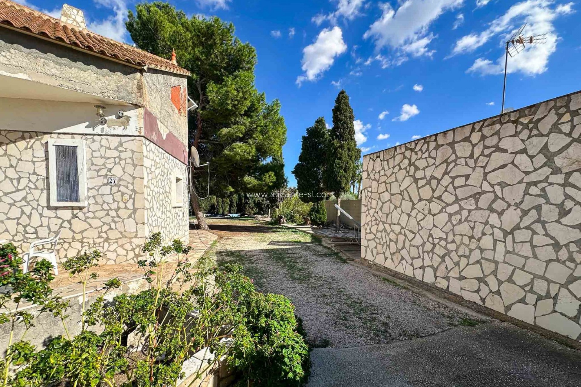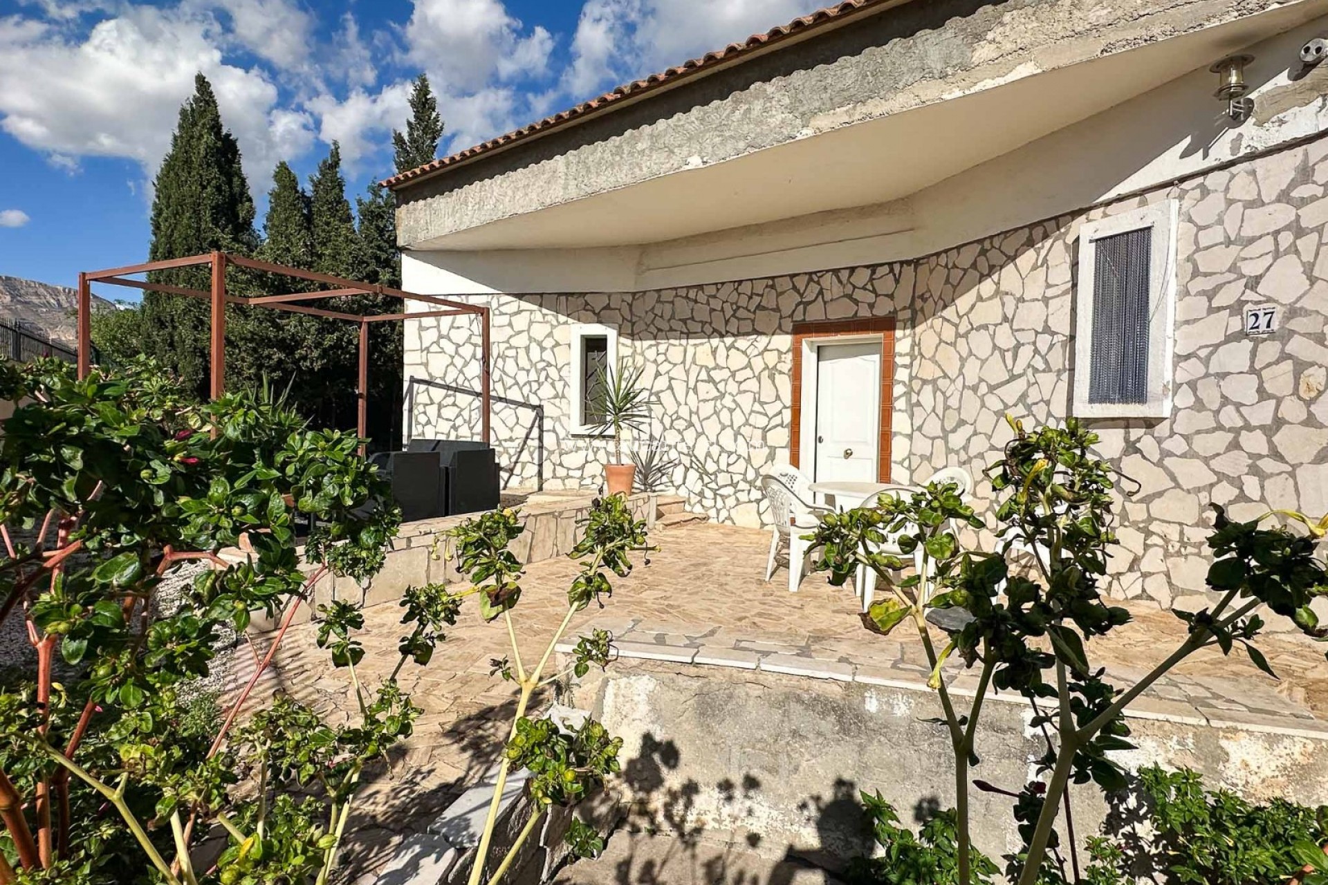 Der Außenbereich ist wirklich entspannend, mit viel Grün durch ausgewachsene Bäume, Pflanzen und Palmen. Das Anwesen befindet sich auf einem großzügigen Grundstück von etwa 1.900 m² und ist über eine asphaltierte Straße mit Einfahrtstor erreichbar. Vorne gibt es zudem eine geräumige Garage/Werkstatt. Darüber hinaus verfügt das Grundstück über einen zweiten Zugang auf der Rückseite über eine Betonauffahrt – zwei Zufahrtsmöglichkeiten also.