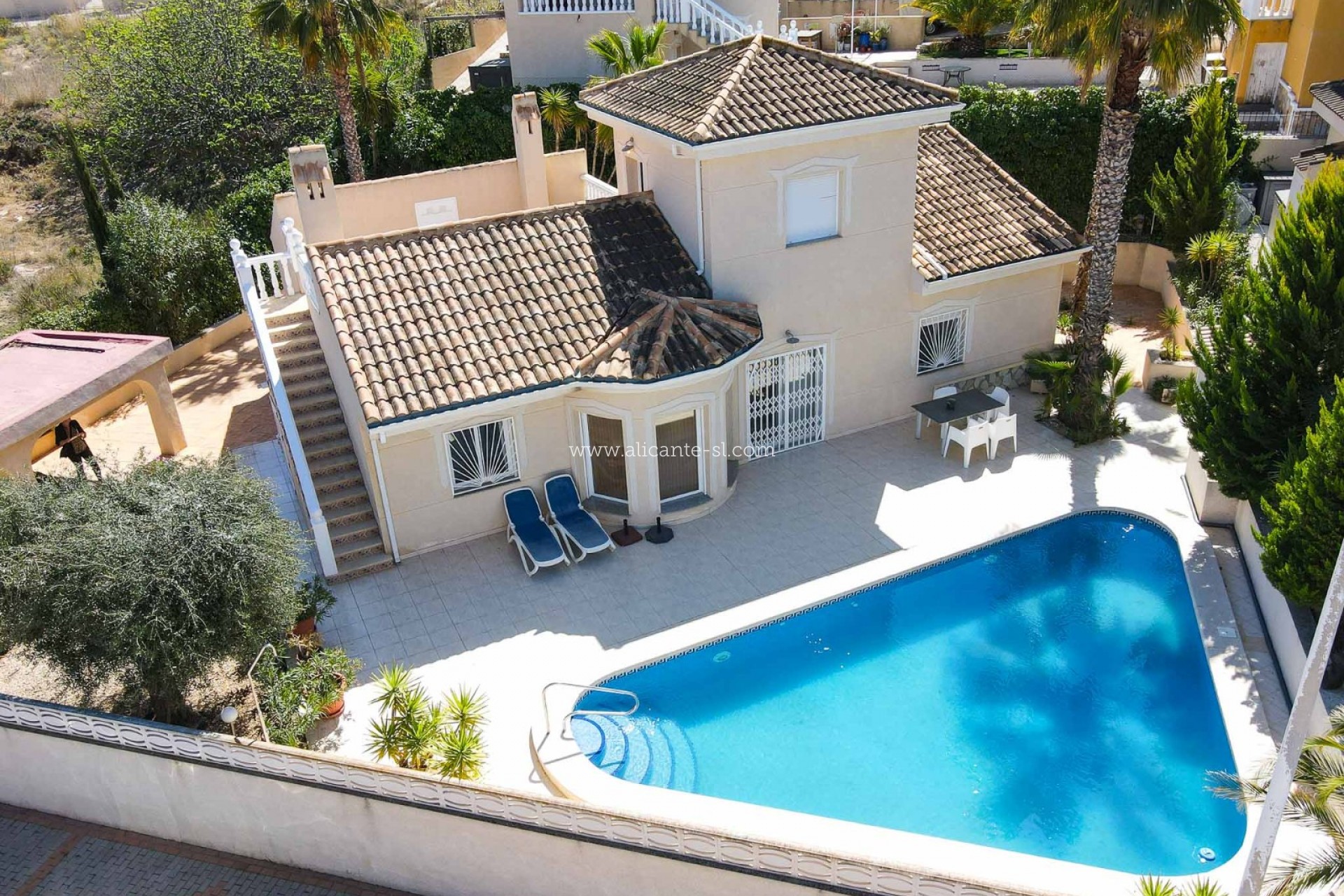 En el exterior, la villa tiene una hermosa piscina privada, áreas para sentarse, puertas de entrada para vehículos que conducen al camino de entrada privado y al estacionamiento para automóviles, todo en una parcela bien mantenida de alrededor de 550 m2, con una variedad de plantas, flores y arbustos maduros.