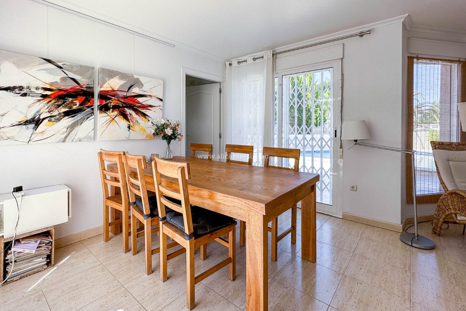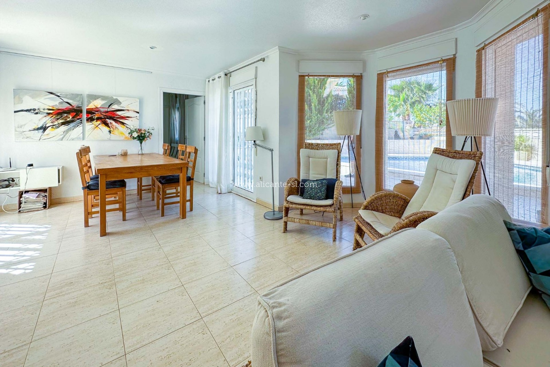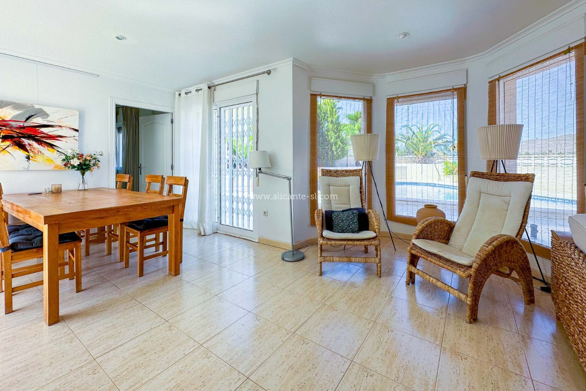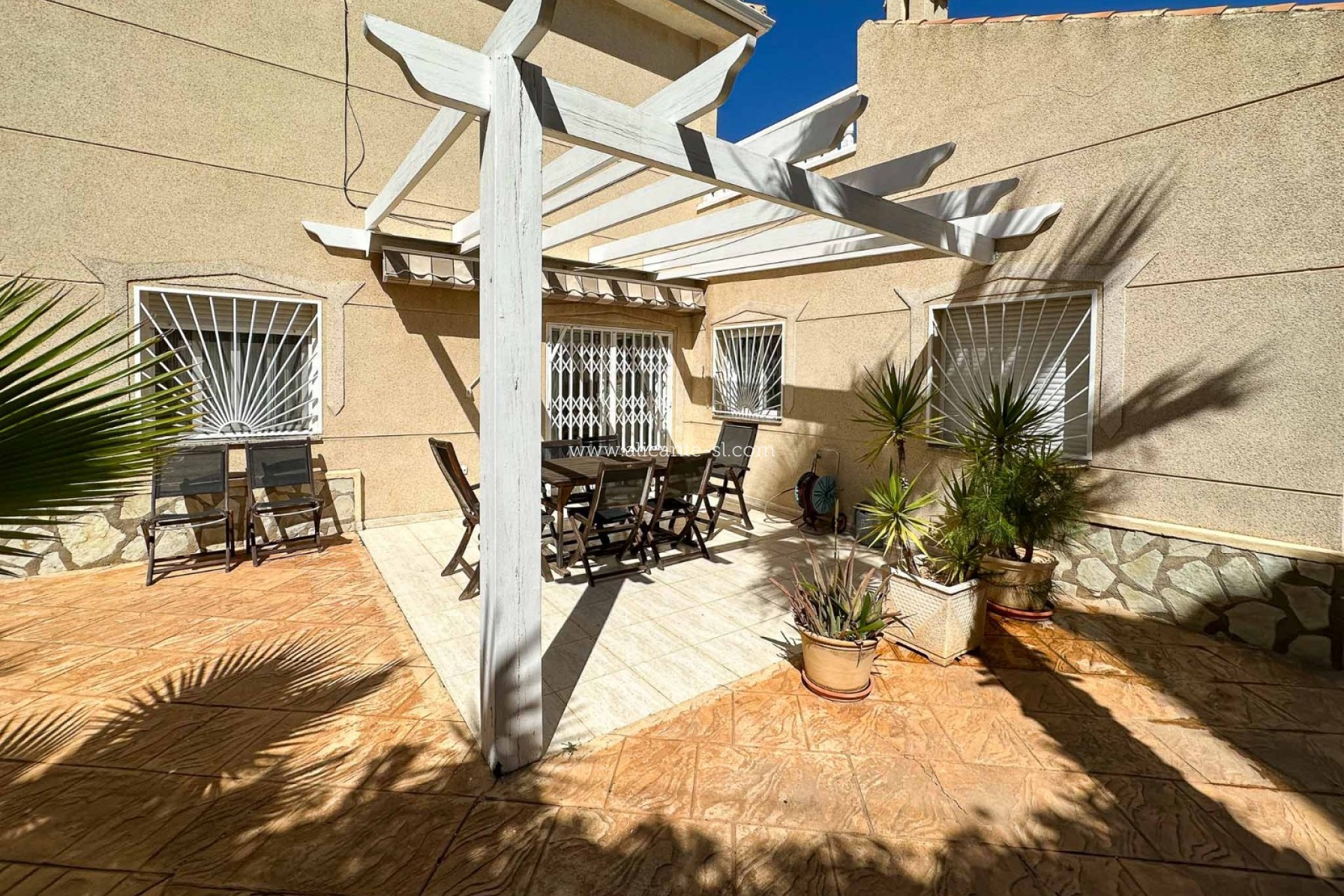 Esta villa impecablemente presentada se distribuye en 2 plantas. En la planta baja hay un gran salón/comedor, cocina totalmente equipada, 3 dormitorios, 2 baños (1 principal en suite), vestíbulo de entrada y salón acristalado con vistas al jardín y la piscina.