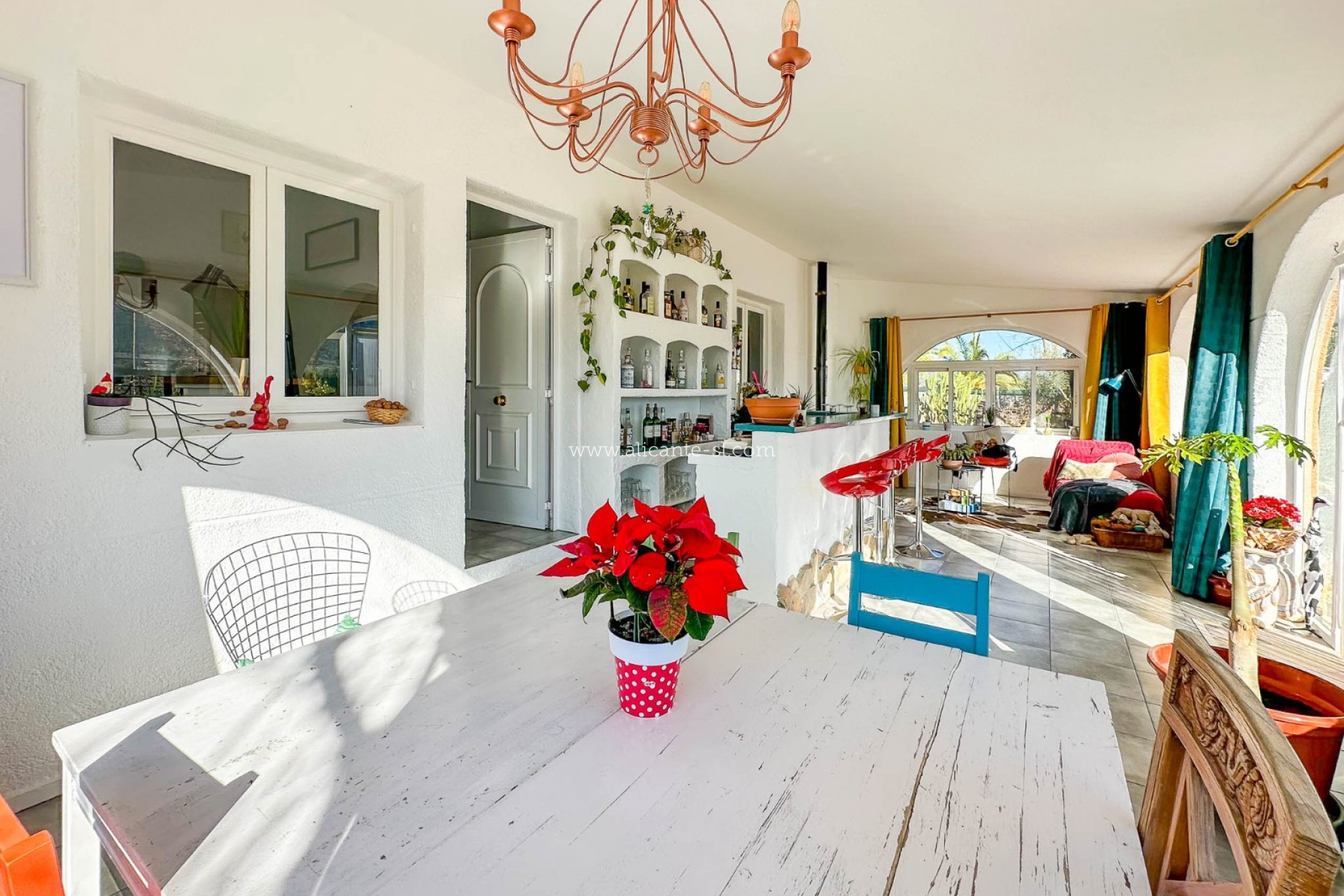 En el centro de este paraíso se encuentra la encantadora villa principal, de aproximadamente 150 m2, que alberga tres amplios dormitorios y un baño. La villa cuenta con un salón de tamaño generoso, completo con una acogedora estufa de leña para las noches más frescas y una moderna cocina contigua que ofrece todas las comodidades para una estancia confortable. Ingrese al área de la terraza acristalada, transformada en un acogedor espacio de bar/restaurante, perfecto para reuniones sociales y de entretenimiento con invitados.