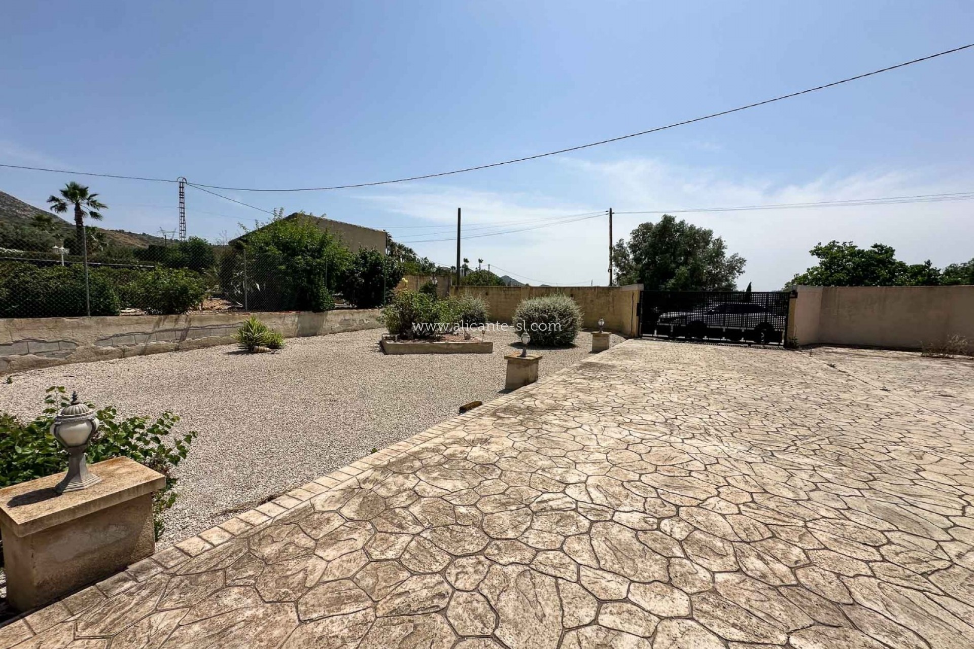 La parcela está completamente vallada y se accede por una entrada para vehículos desde una carretera asfaltada.