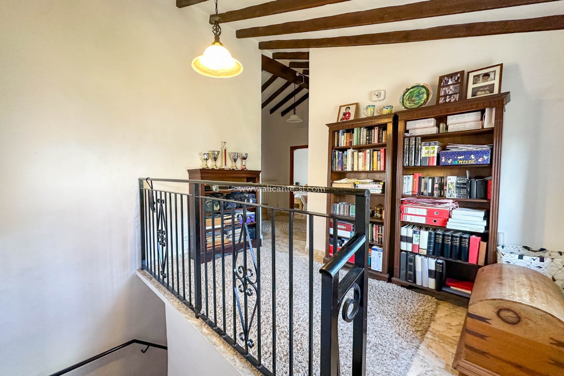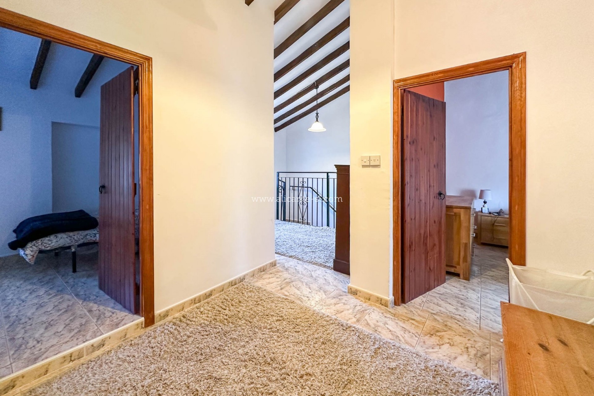 En la planta superior se encuentra un amplio distribuidor abierto que da acceso a otros 4 dormitorios dobles y un gran baño con ducha y bañera.