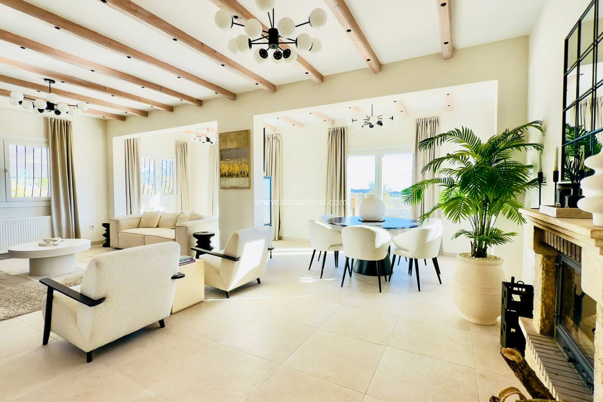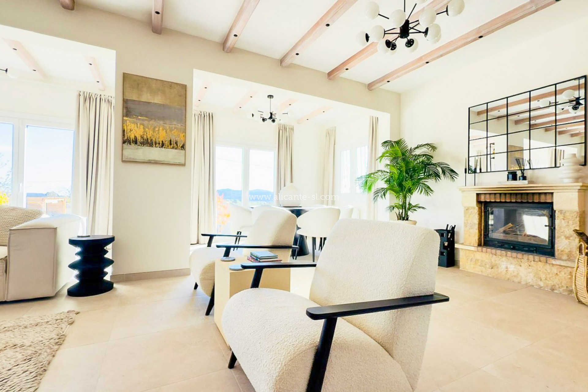 Cuenta con tres amplios dormitorios dobles, incluido un dormitorio principal con baño en suite, además de un segundo baño familiar moderno. El confort está garantizado durante todo el año gracias a las ventanas de doble acristalamiento de PVC, aire acondicionado, calefacción central, suelo radiante y chimenea de leña, lo que convierte esta propiedad en una vivienda ideal tanto como residencia permanente como para una escapada de alto nivel.