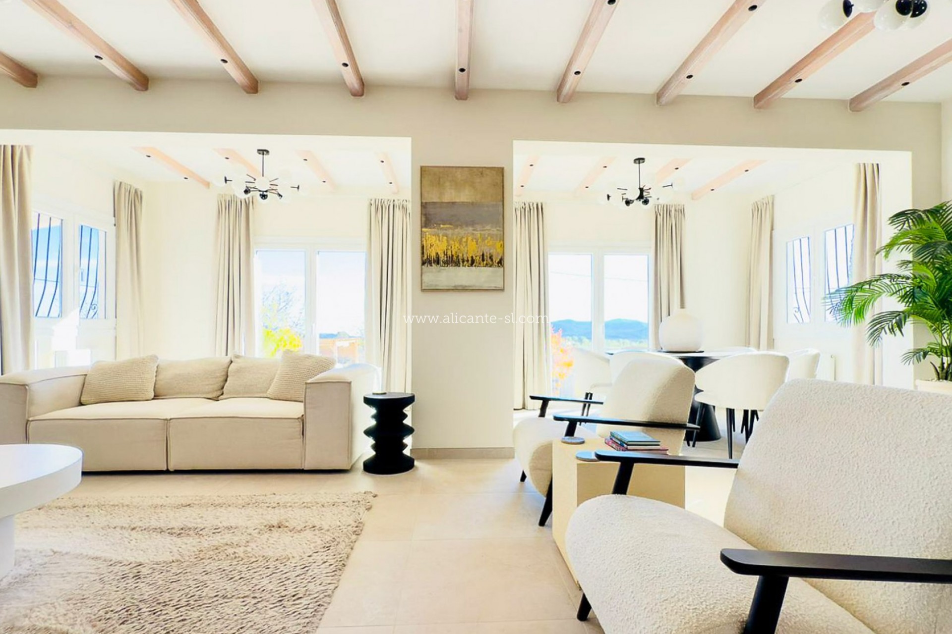La vivienda dispone de aproximadamente 170 m² construidos, distribuidos en torno a una luminosa y amplia zona de estar de concepto abierto. Los detalles en madera natural y los acabados modernos de alta calidad aportan un ambiente cálido y sofisticado, ideal tanto para la vida diaria como para recibir invitados. La cocina equipada de alta gama se integra perfectamente con el salón y el comedor, mientras que un lavadero independiente y un aseo de cortesía aportan una gran funcionalidad.