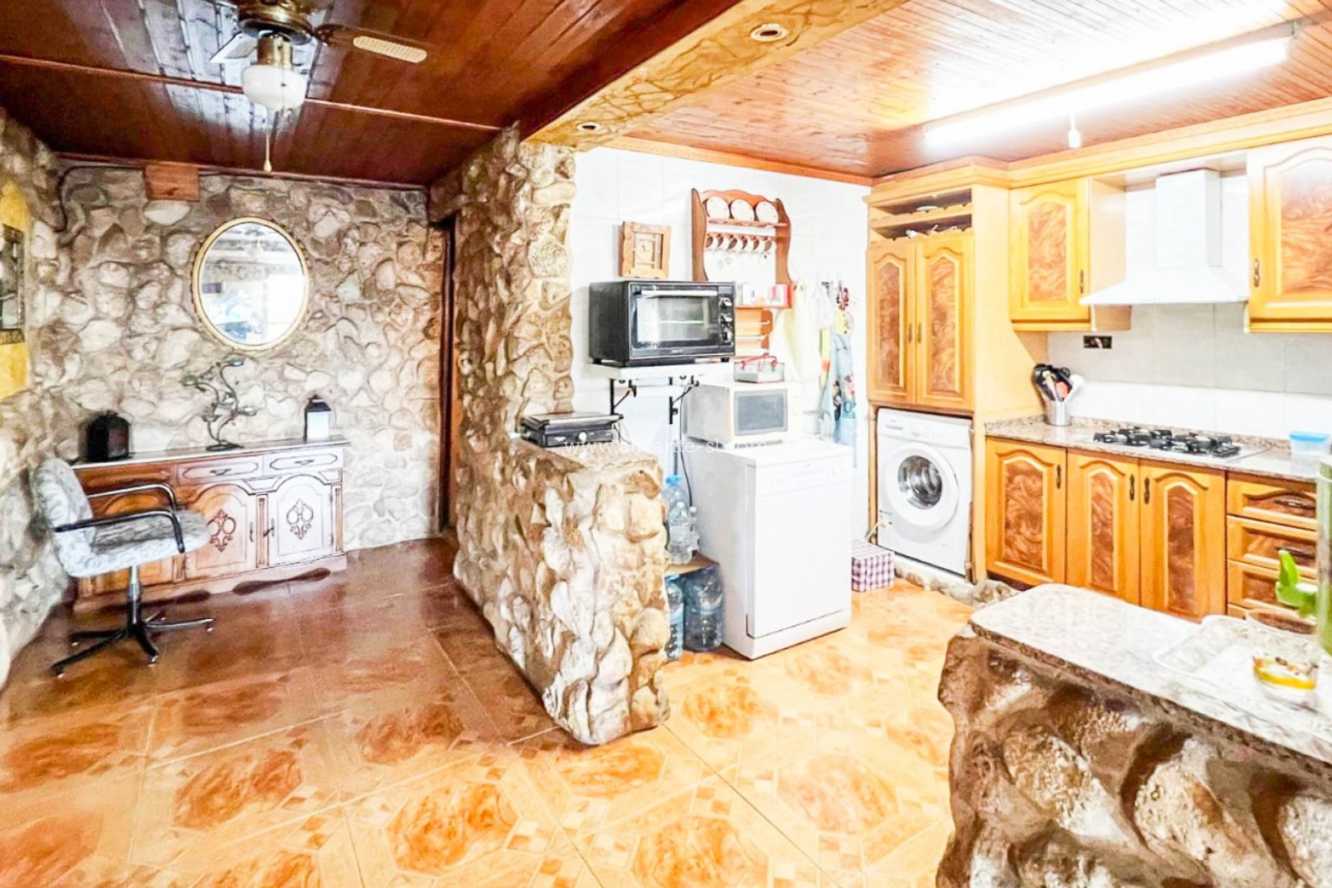 La planta superior se accede mediante una elegante escalera exterior que conduce a un balcón panorámico con impresionantes vistas de 360 grados al entorno natural. En el interior, el espacio es luminoso y amplio, con una cocina abierta totalmente equipada y un cómodo salón-comedor. Esta planta cuenta además con tres dormitorios de buen tamaño con armarios empotrados y un baño familiar. Desde el comedor, una escalera metálica conduce a un espacio abuhardillado, actualmente utilizado como zona de almacenamiento.