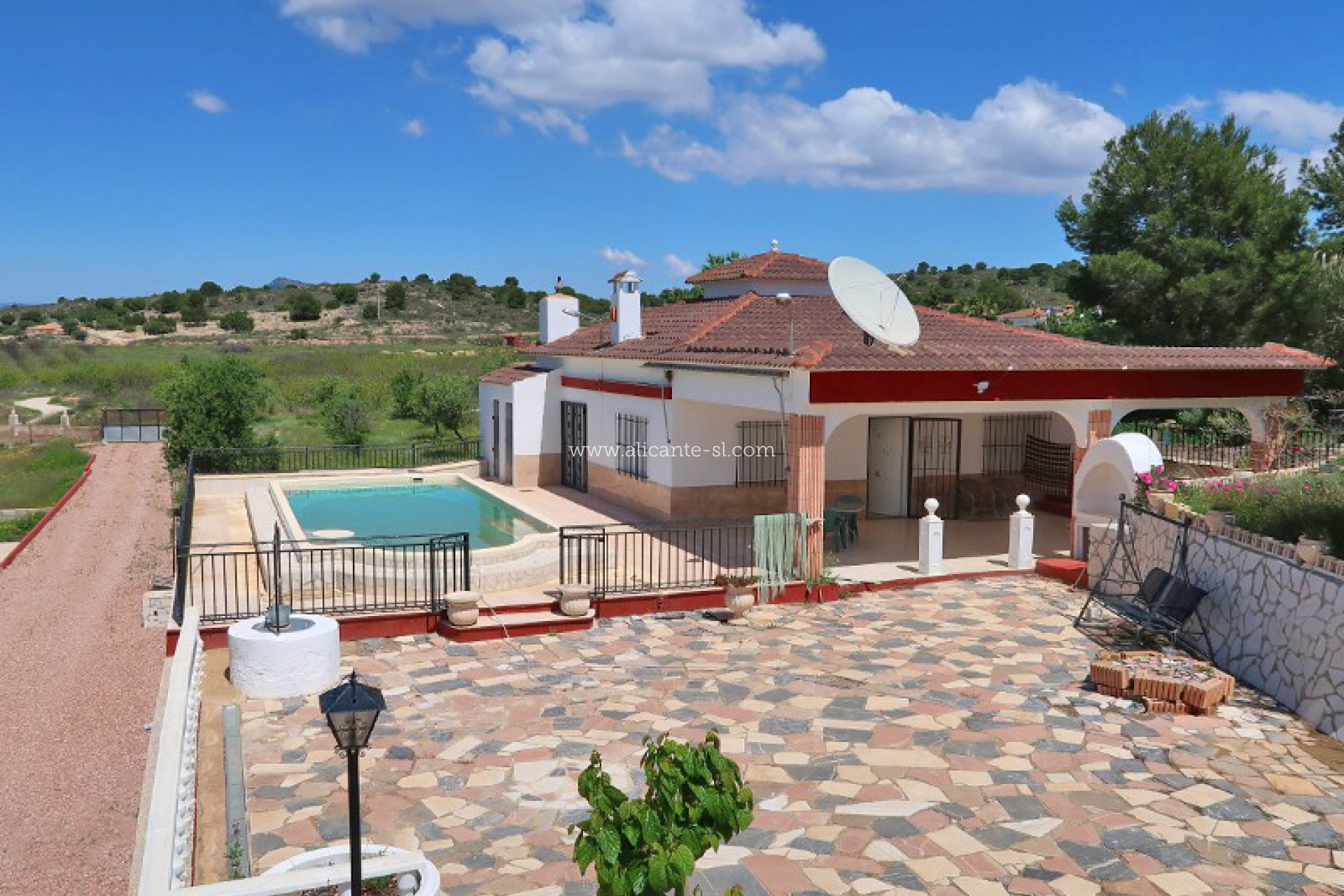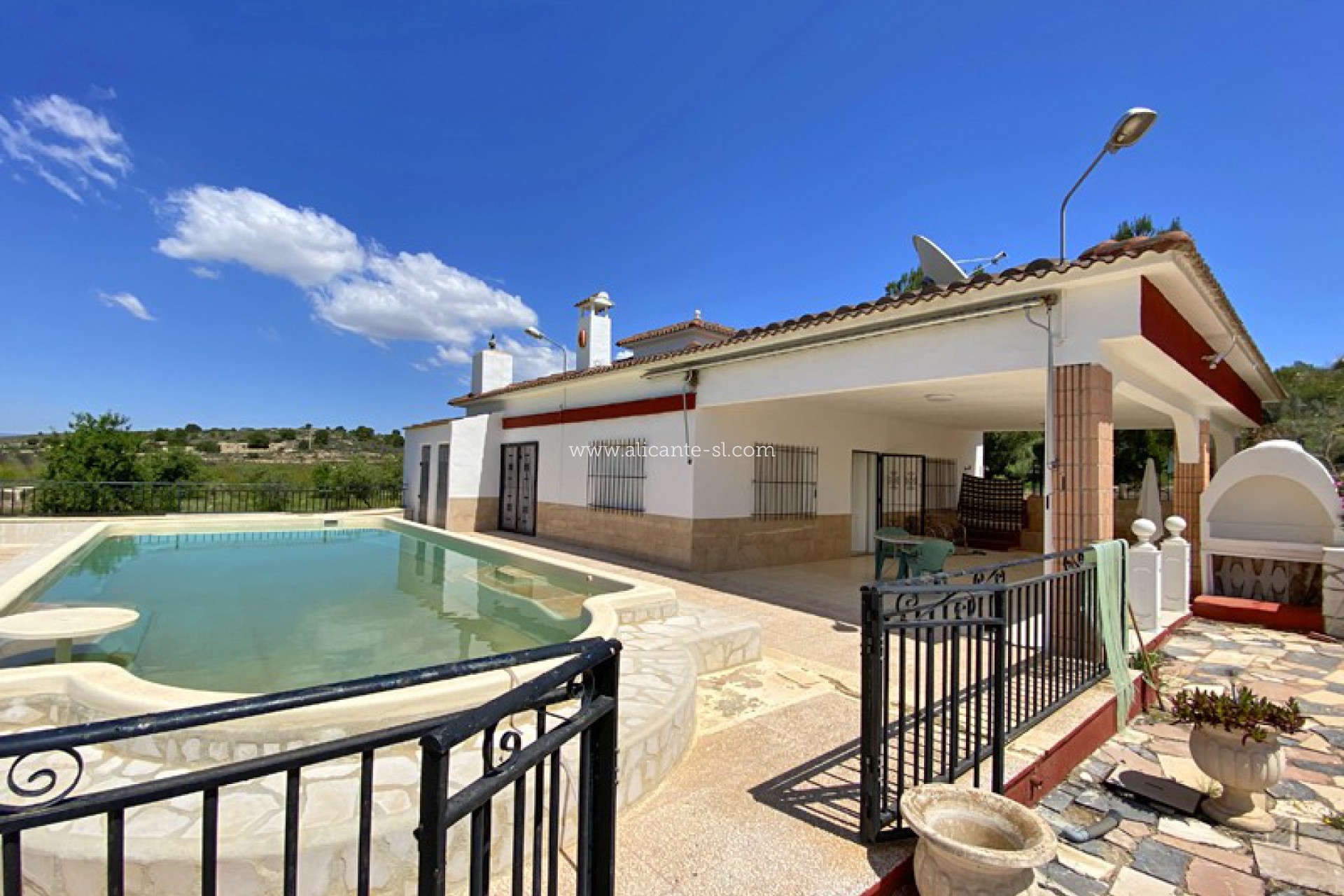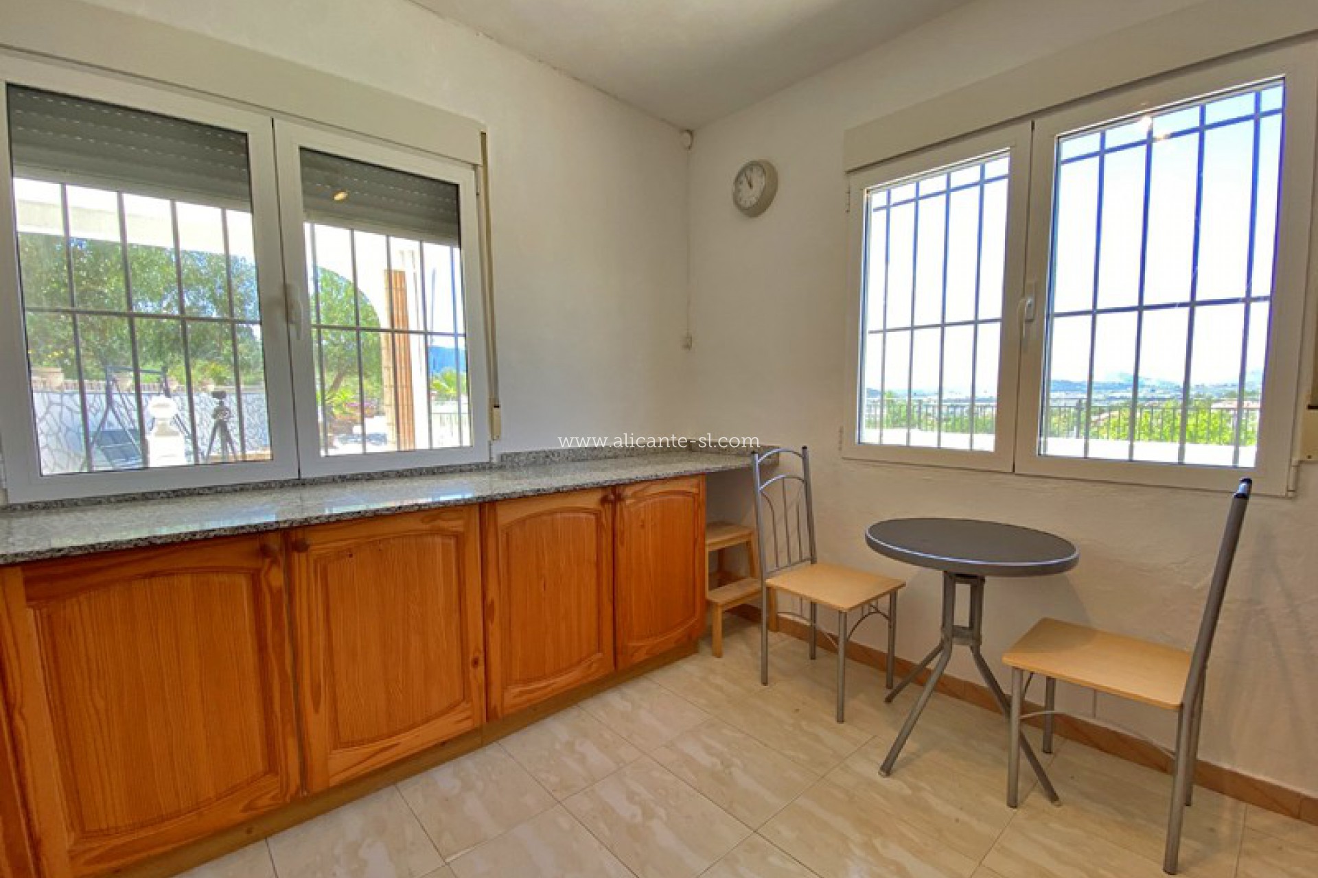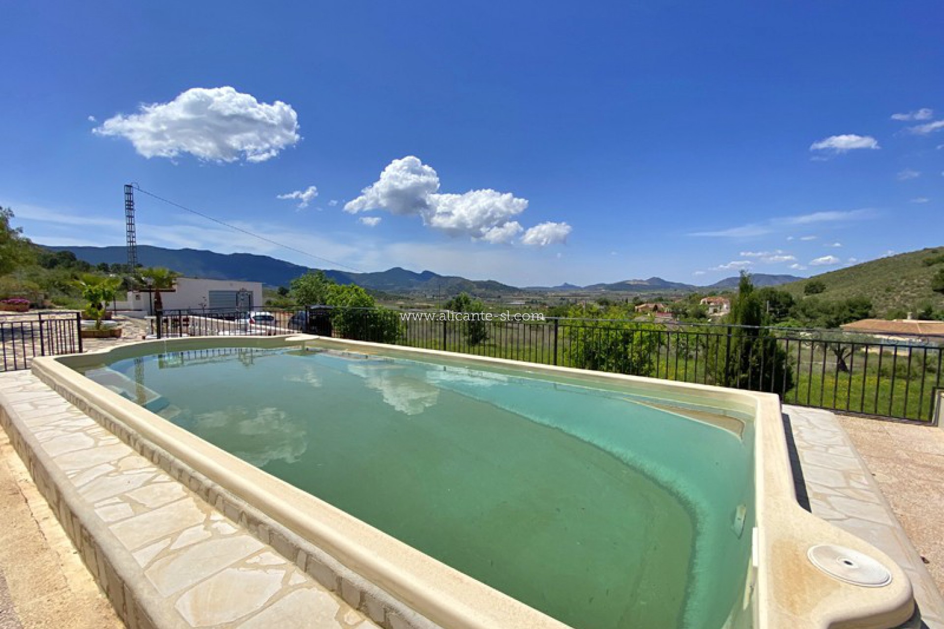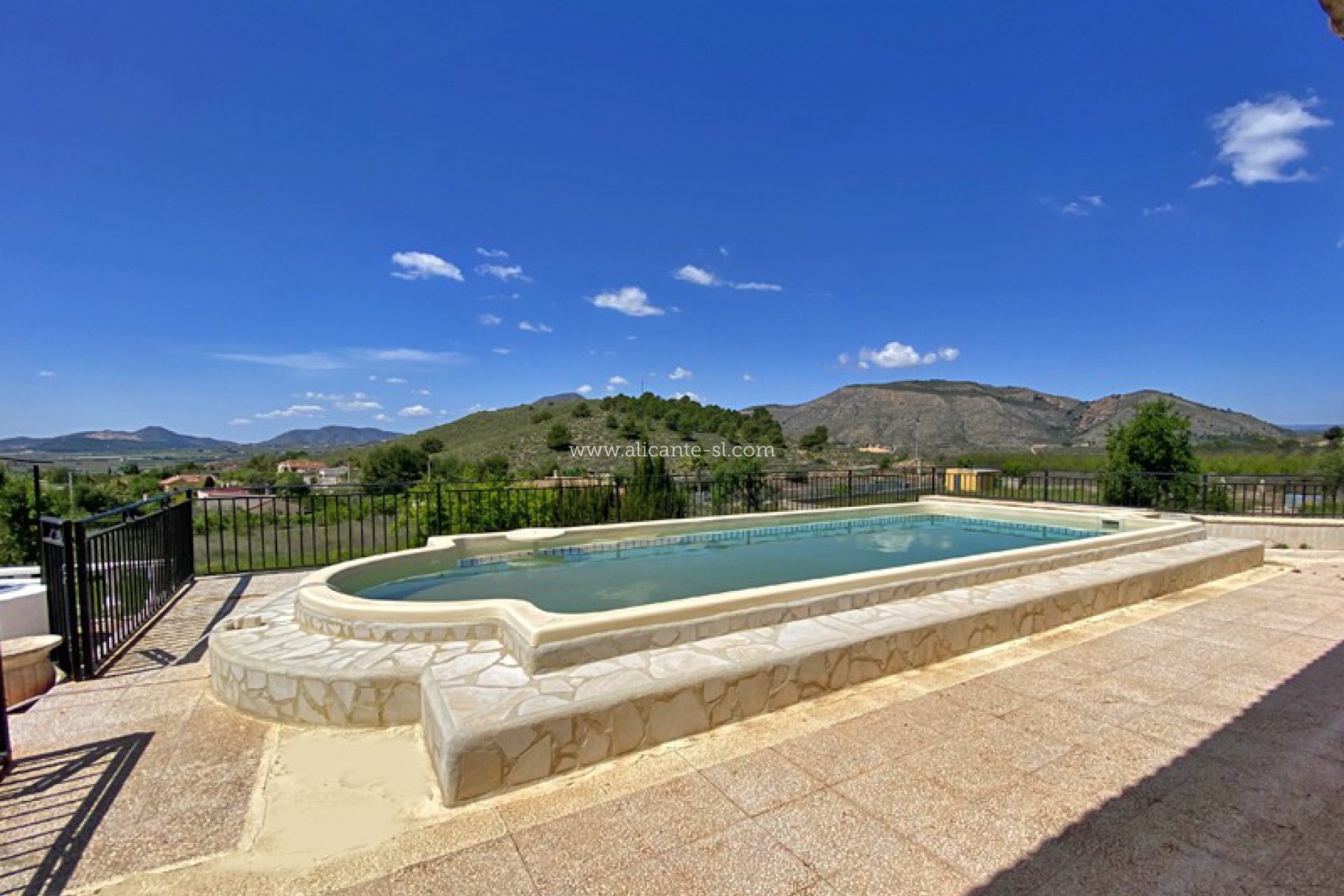 Buiten is er een zwembad met zonneterras met prachtig uitzicht op de Hondon-vallei, een grote garage, ingebouwde bbq-ruimte en een extra opslagruimte van 20m2.