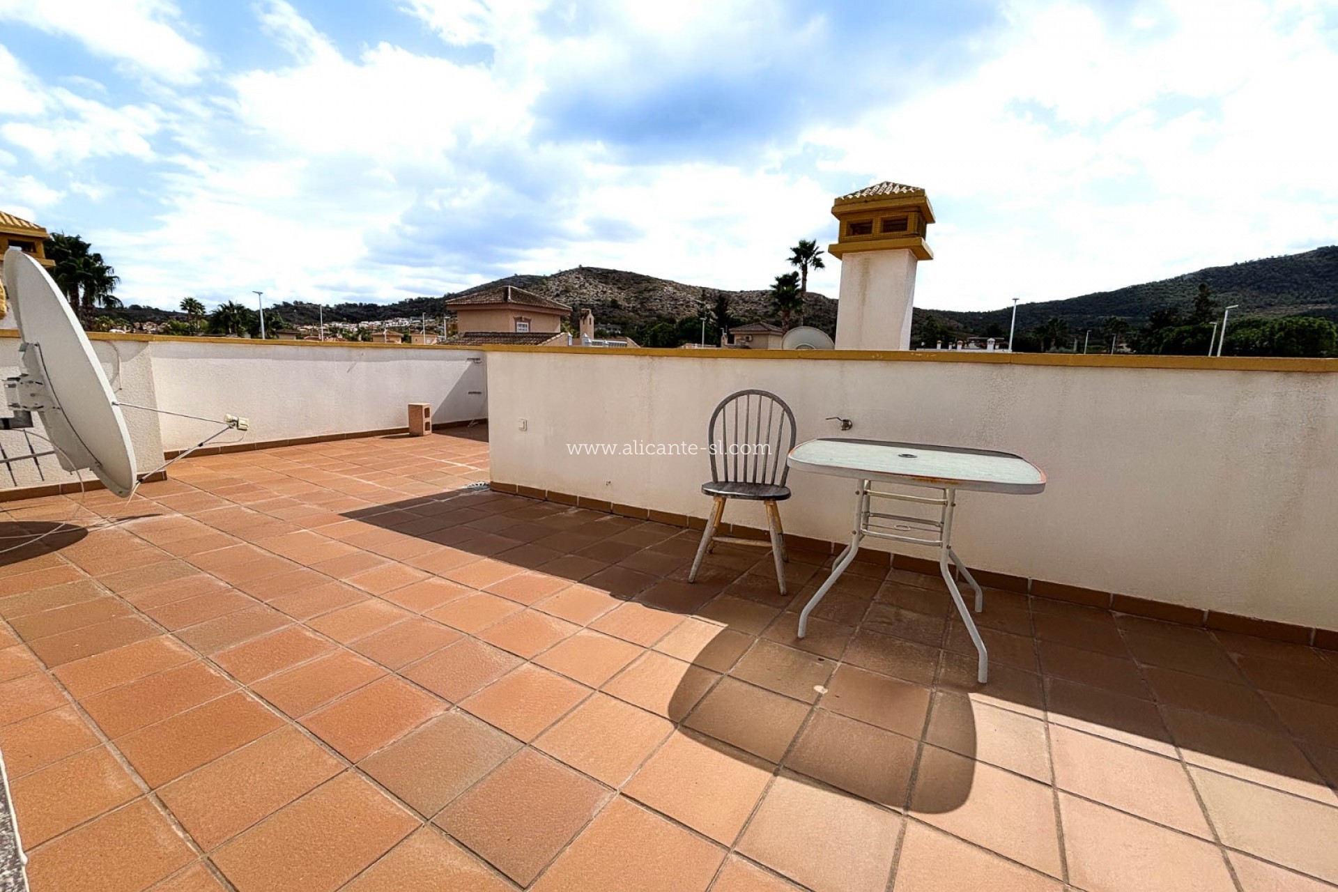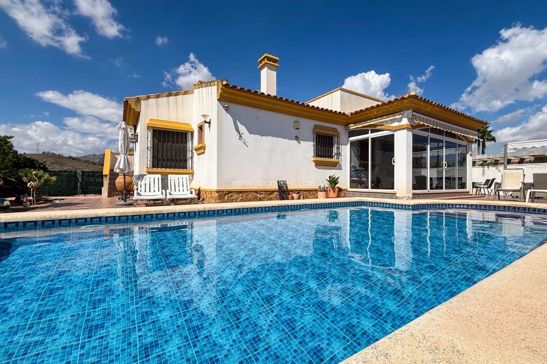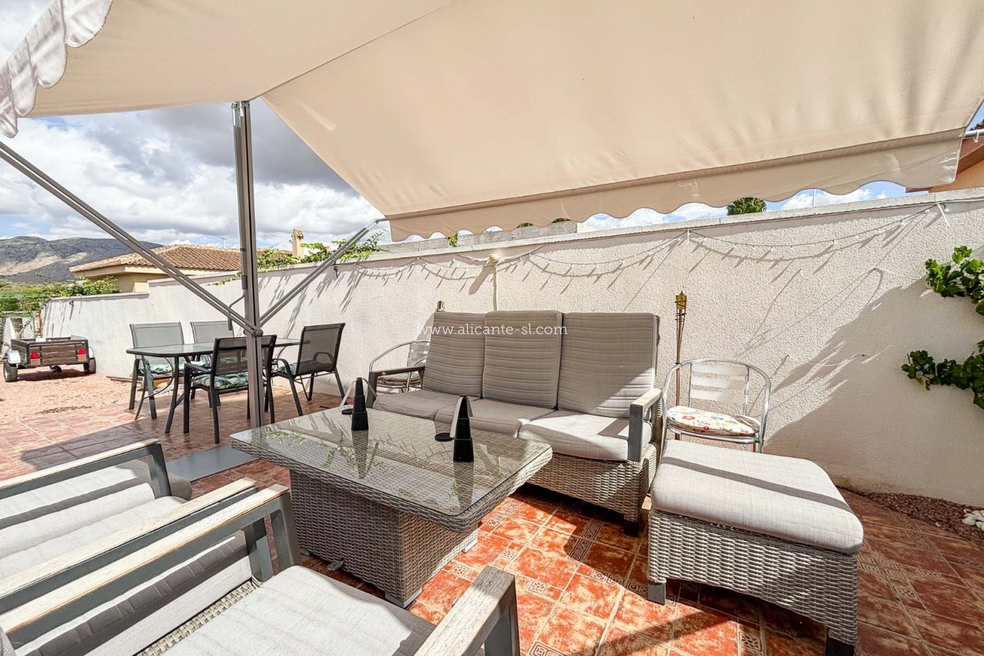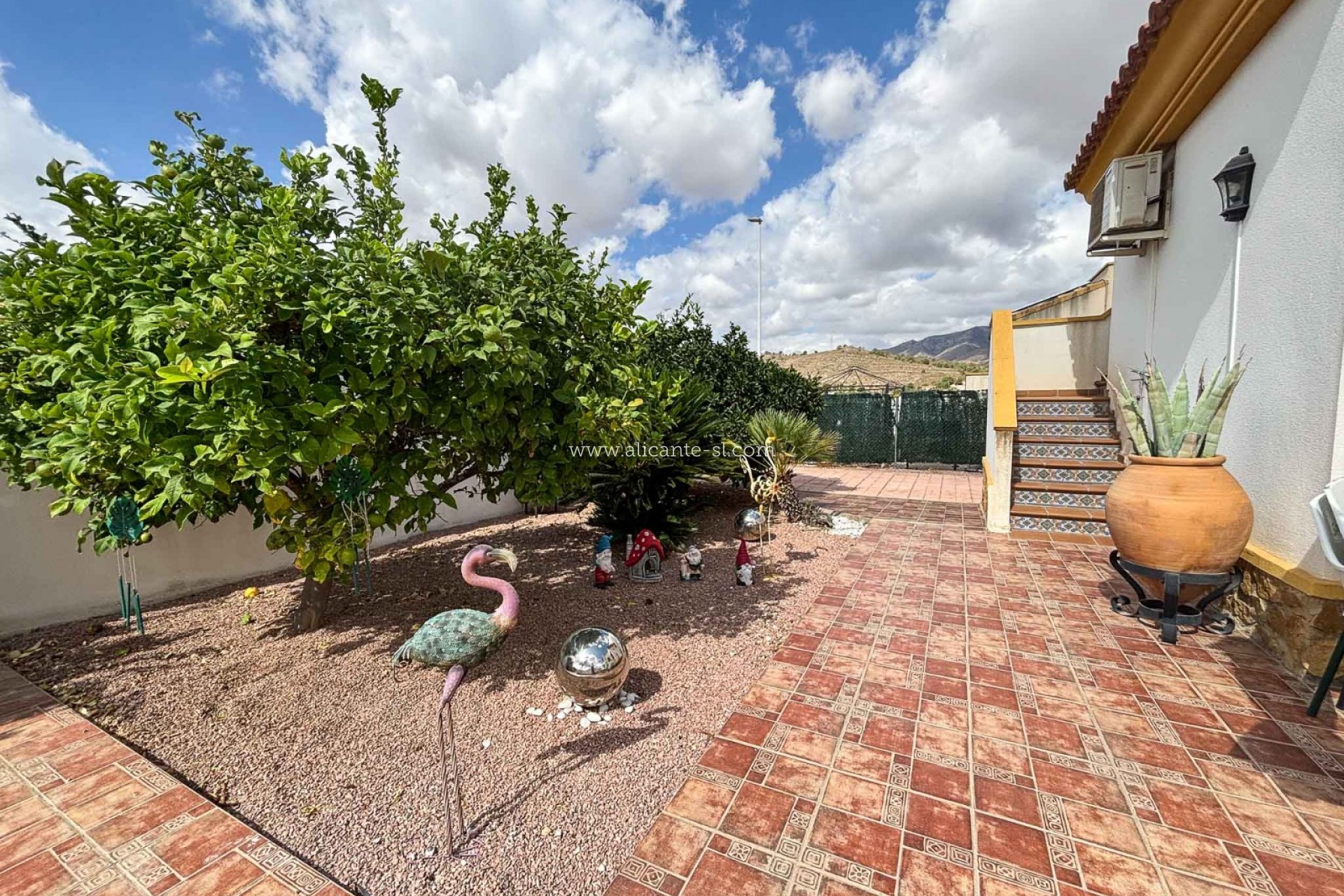 Buiten heeft de villa een privézwembad van 8x4 m met zonneterras, een toegangspoort voor voertuigen met privéoprit, een onderhoudsvriendelijke tuin met diverse planten en bloemen en een ruim dakterras met prachtig uitzicht over de Hondón-vallei.