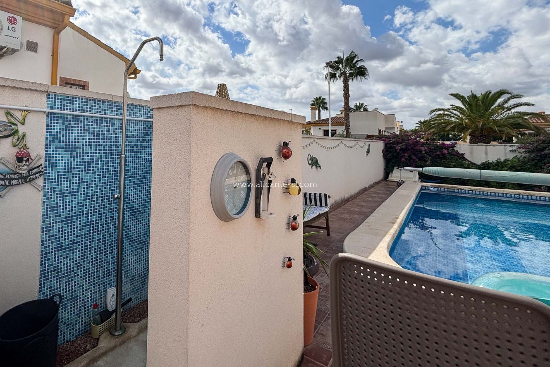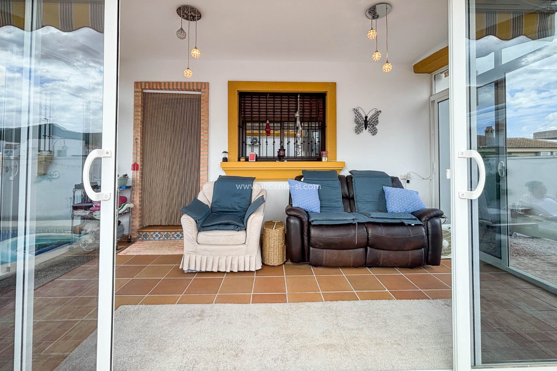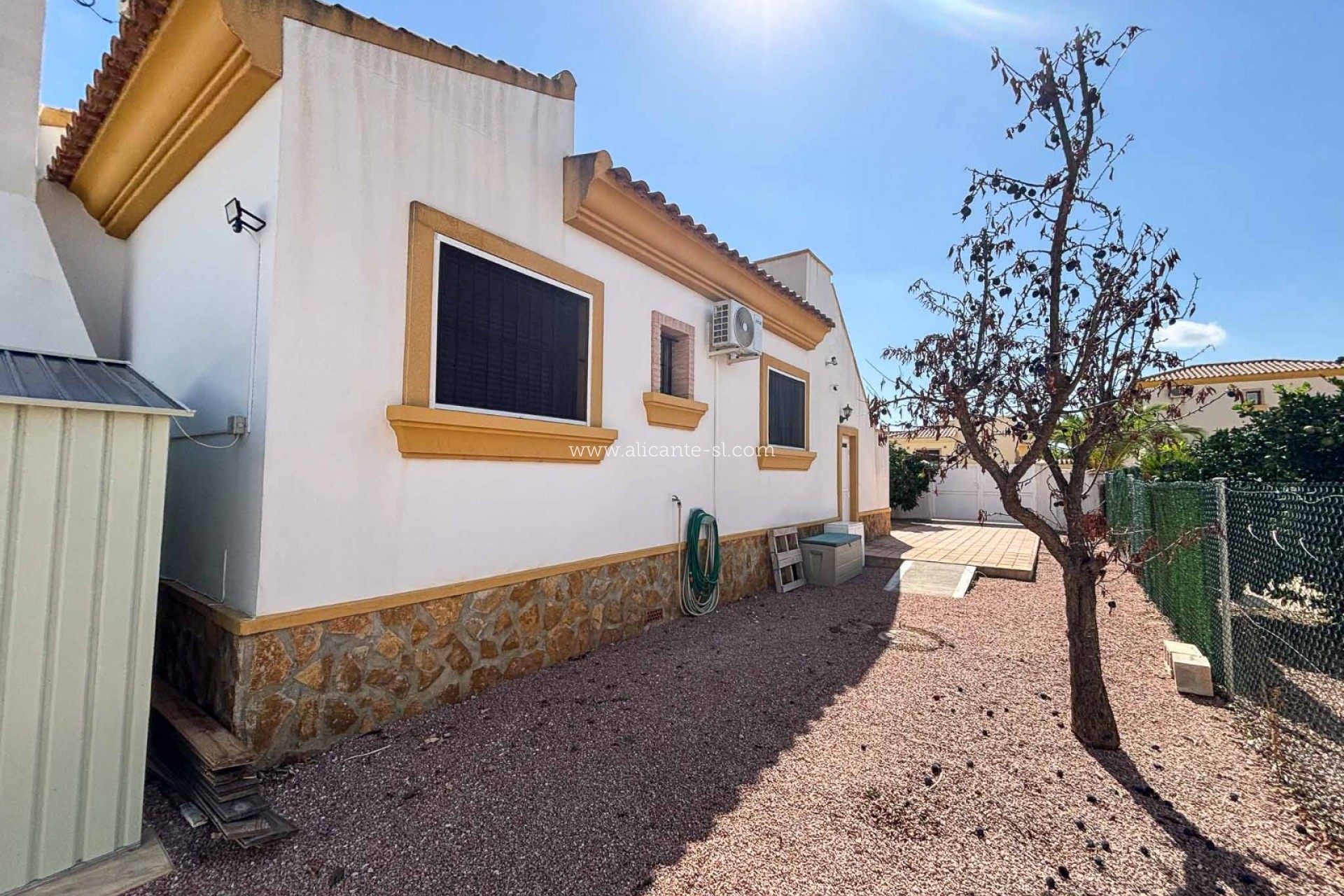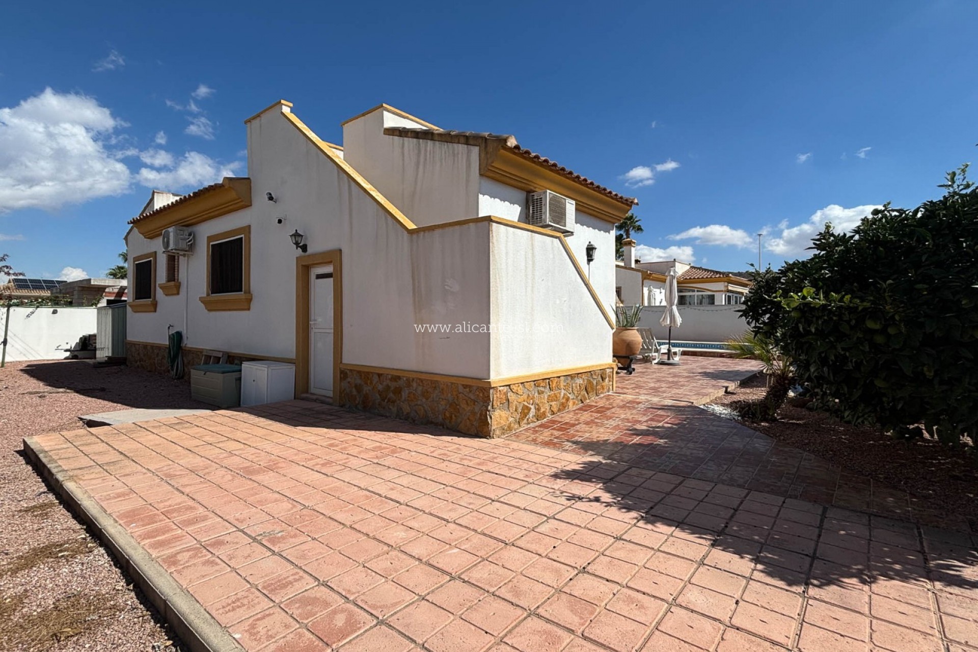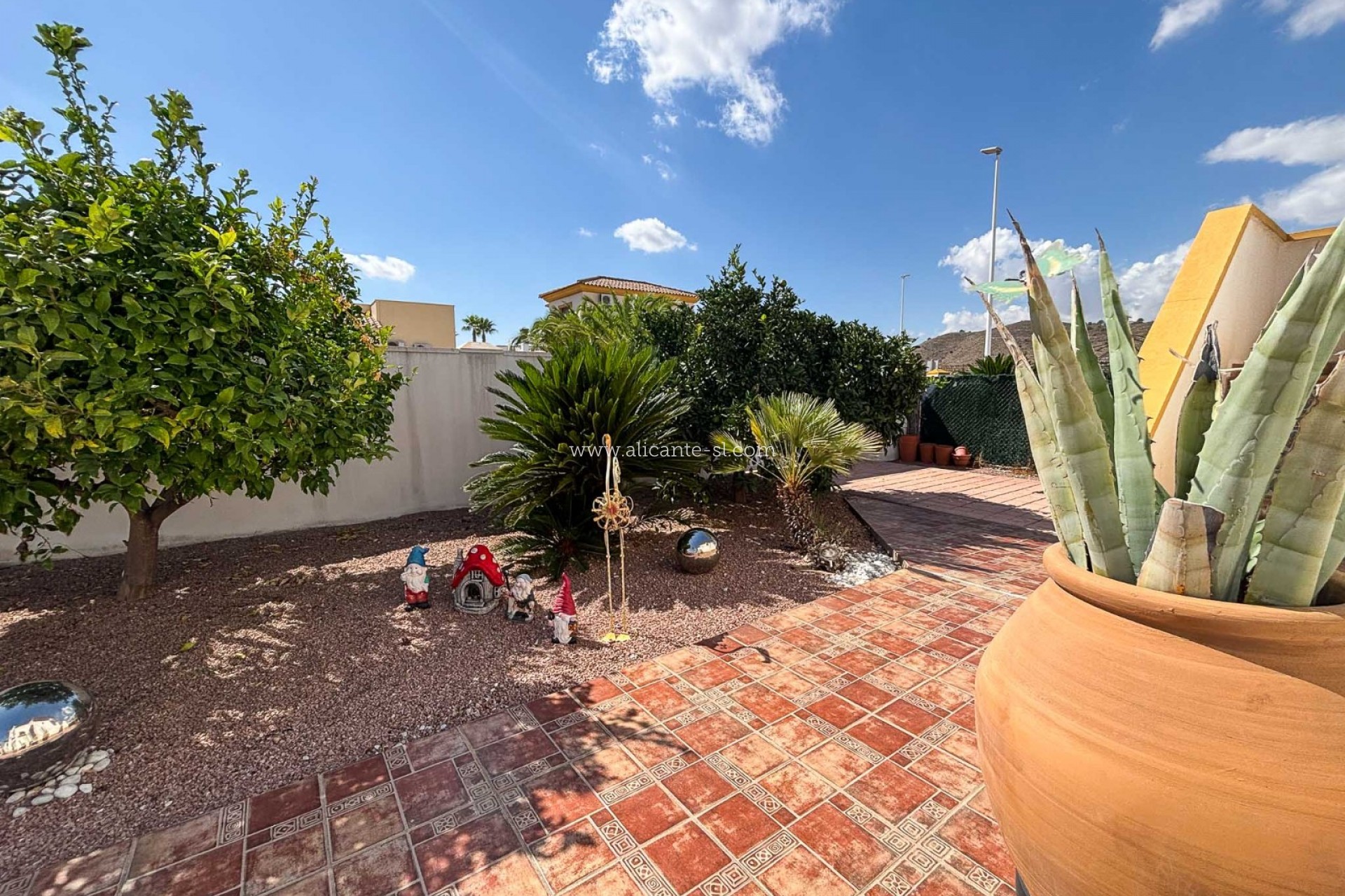 Buiten heeft de villa een privézwembad van 8x4 m met zonneterras, een toegangspoort voor voertuigen met privéoprit, een onderhoudsvriendelijke tuin met diverse planten en bloemen en een ruim dakterras met prachtig uitzicht over de Hondón-vallei.