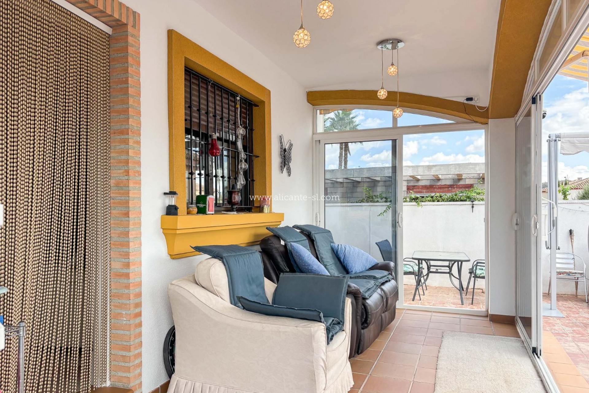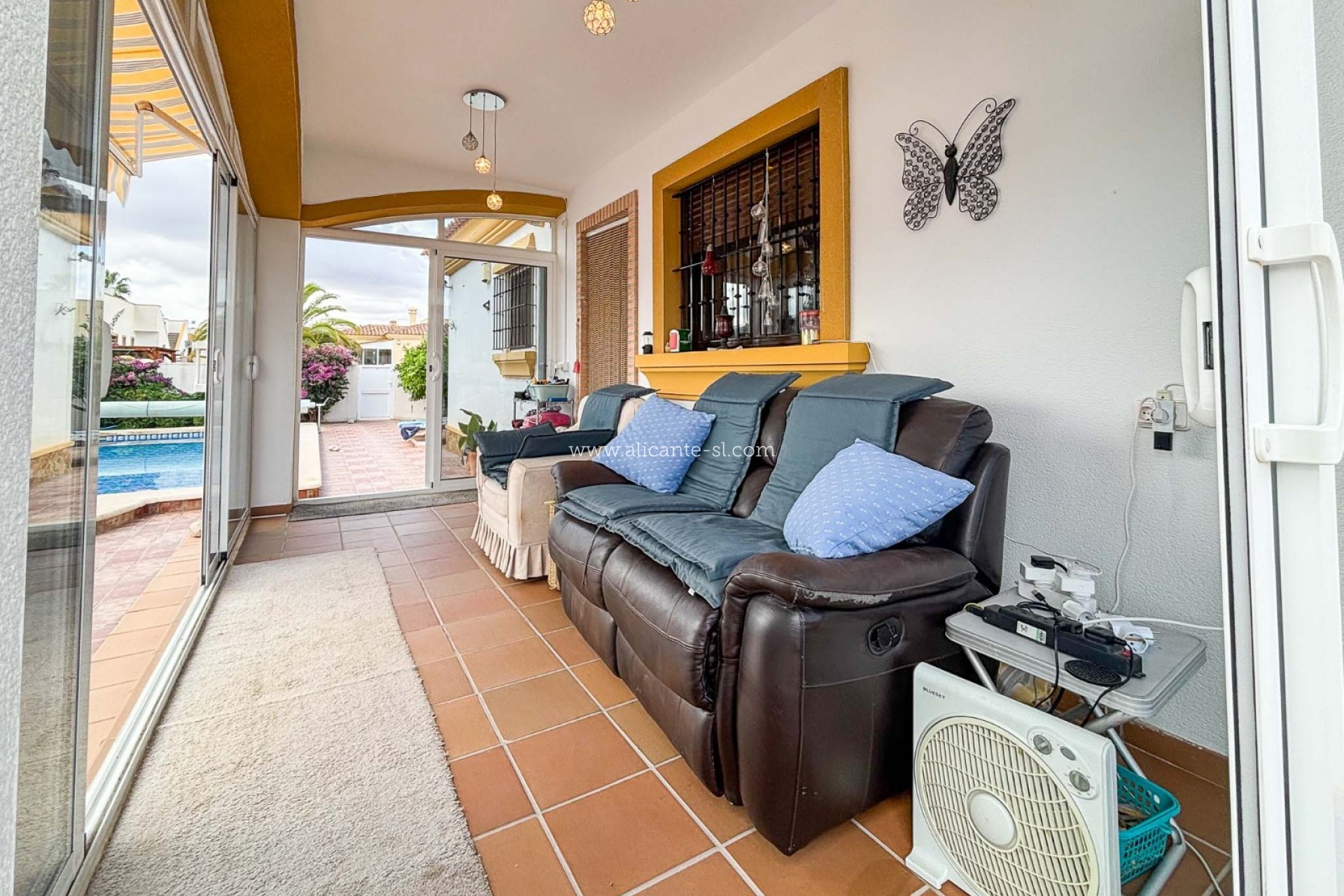 Deze villa beschikt over 3 slaapkamers, 2 badkamers, woonkamer/eetkamer, volledig ingerichte keuken en een glazen veranda met uitzicht op het zwembadgedeelte.