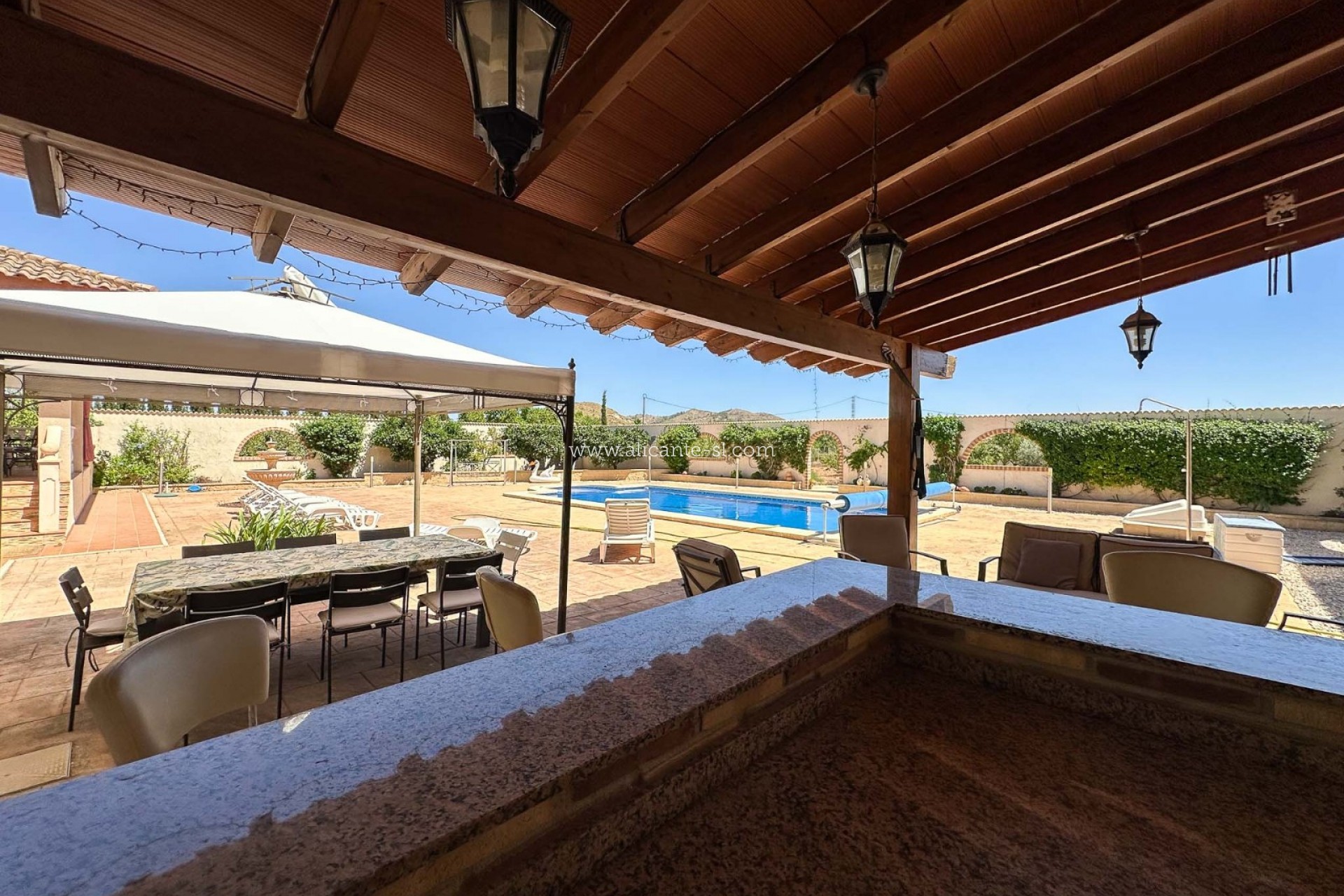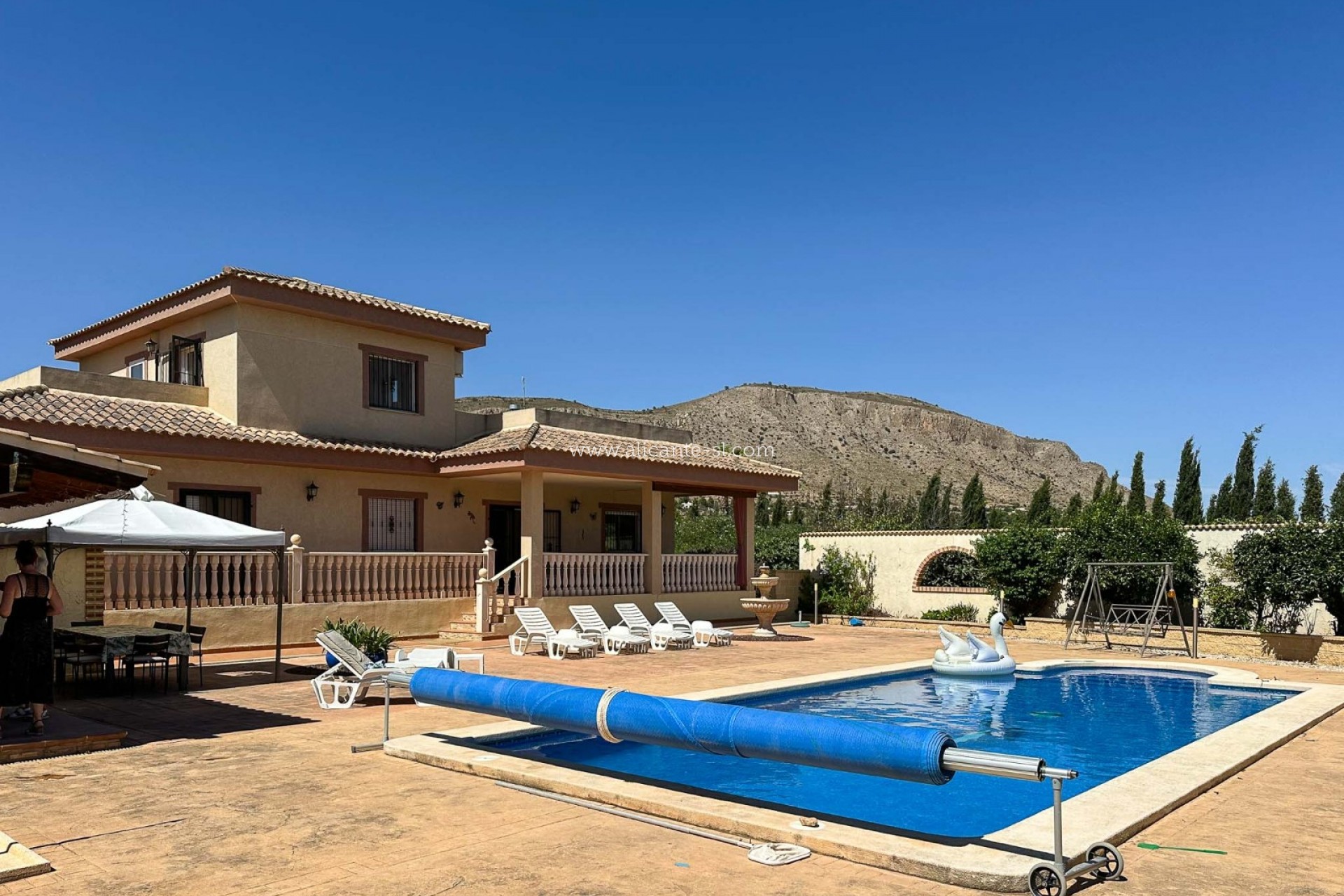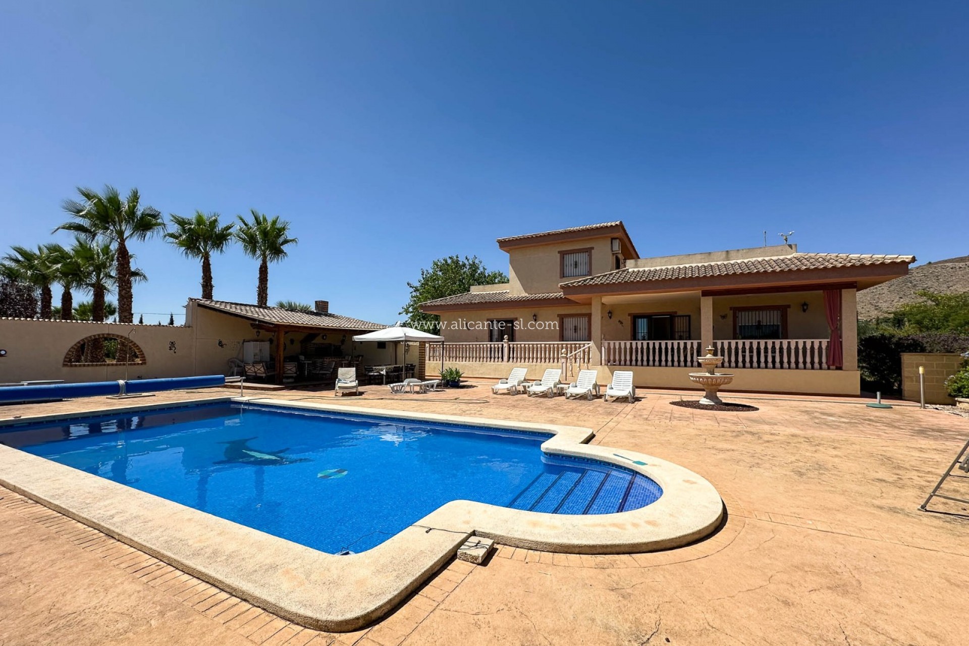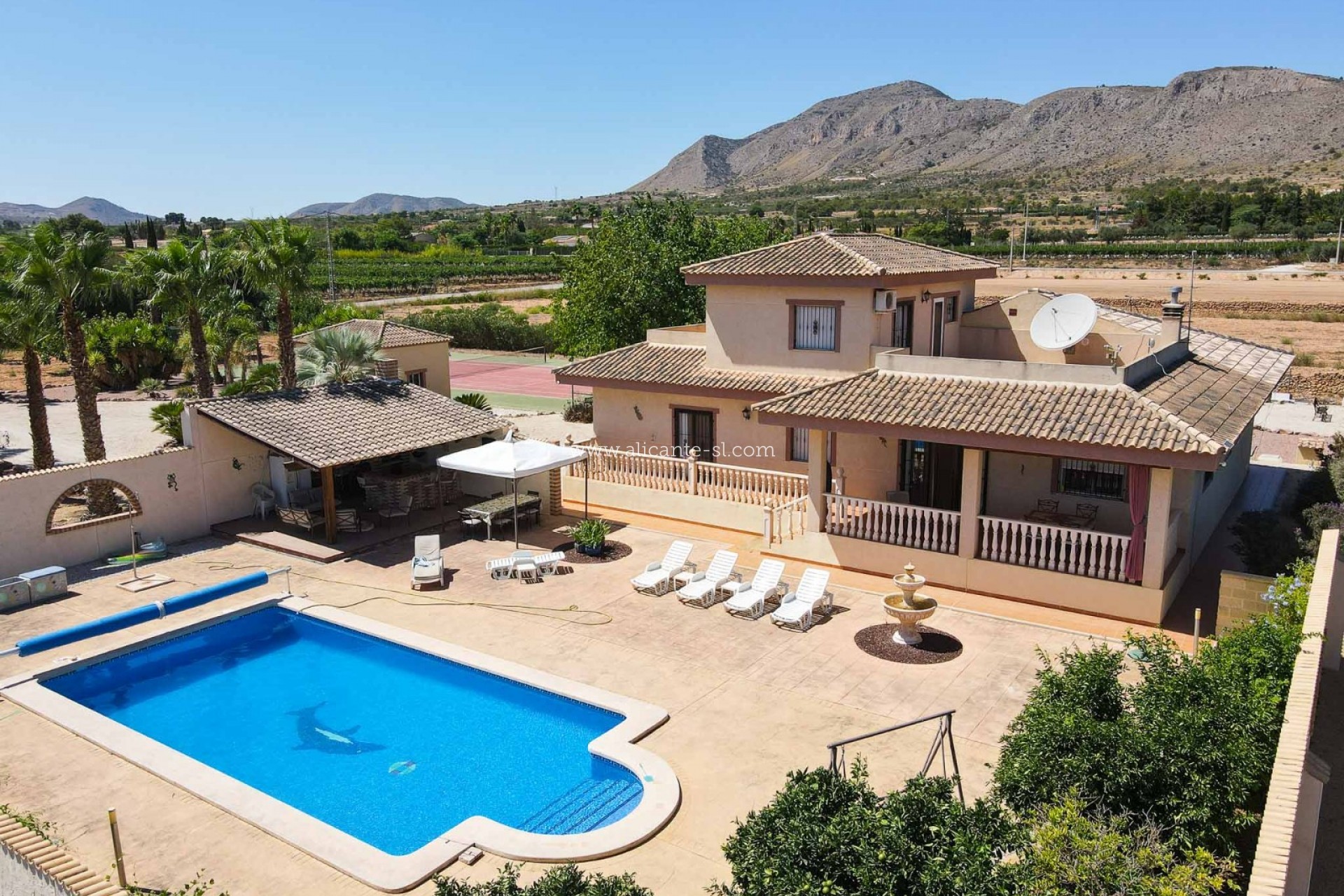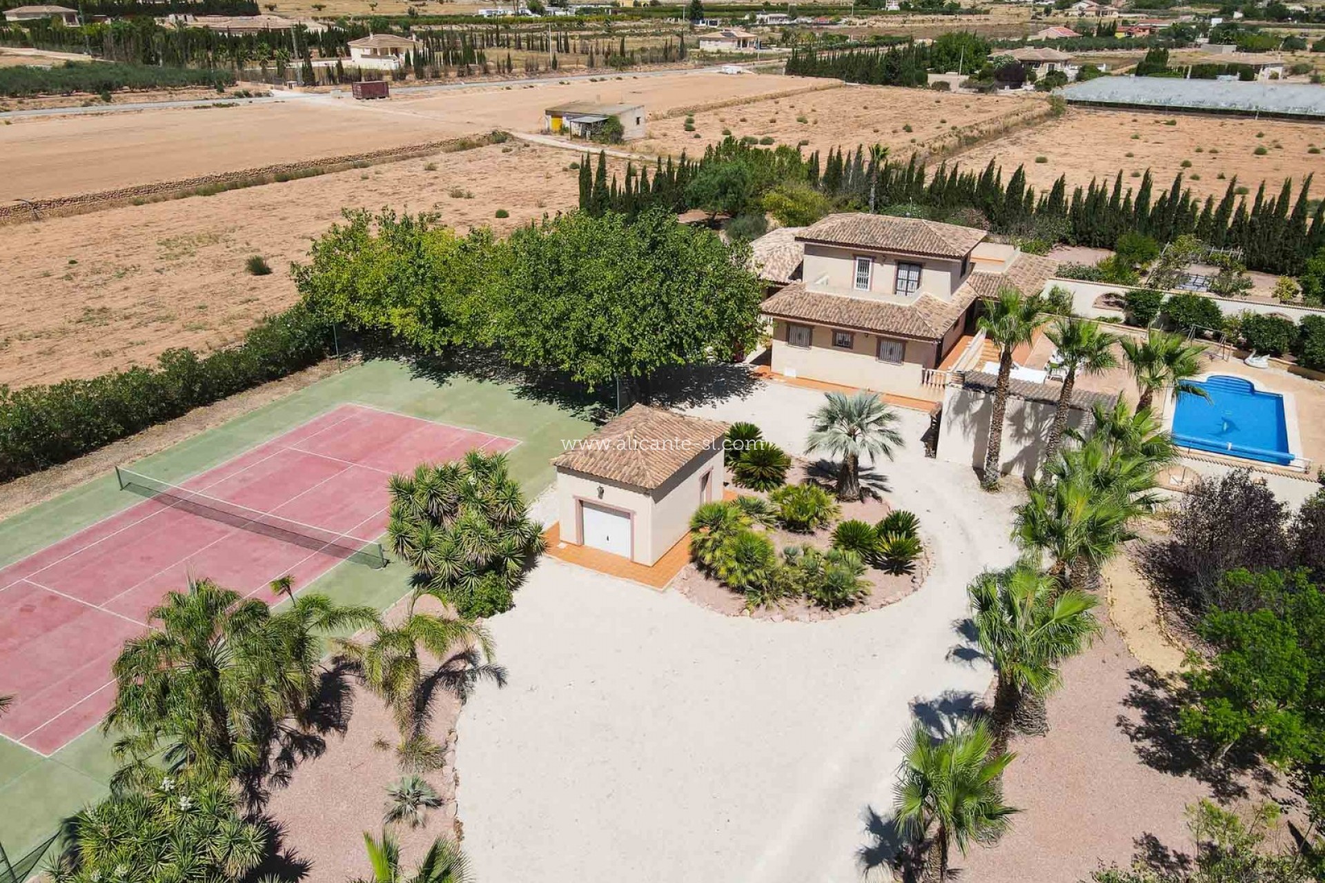 Alicante Sales & Lettings are delighted to bring to the market this exceptional 5-bedroom, 4-bathroom villa with private pool, tennis court, and garage, just a short 2-minute drive from the ever-popular village of Hondón de las Nieves.
