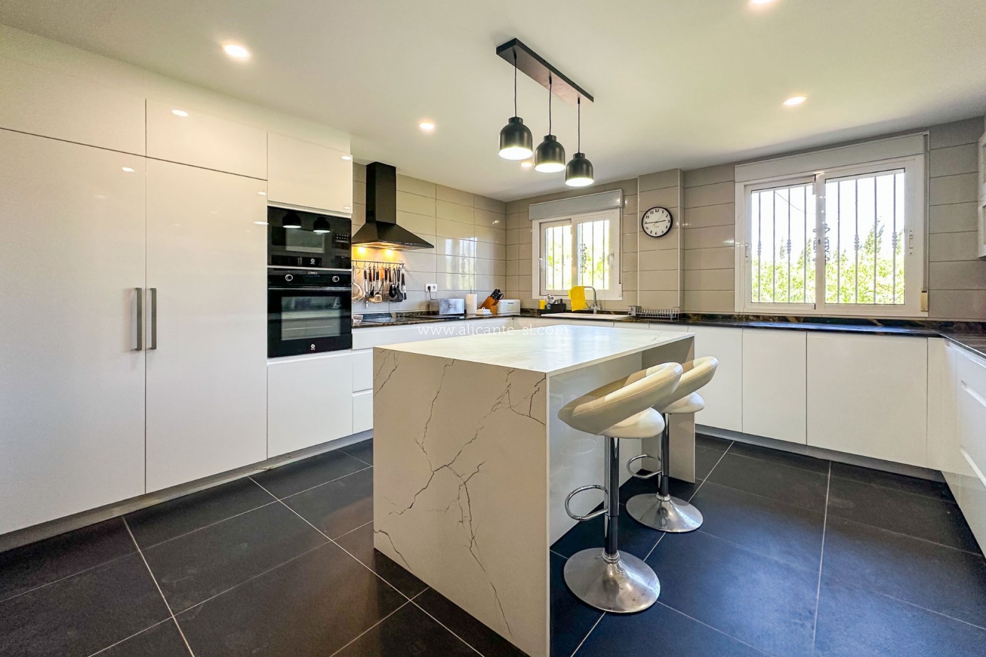 Set in a peaceful and private location surrounded by rolling countryside, this beautifully designed villa captures the perfect blend of traditional Spanish character with modern comfort. It’s the ideal retreat for anyone looking for a spacious family home or a luxurious holiday residence, all while being close to the village and only 30 minutes from Alicante airport and the coast.