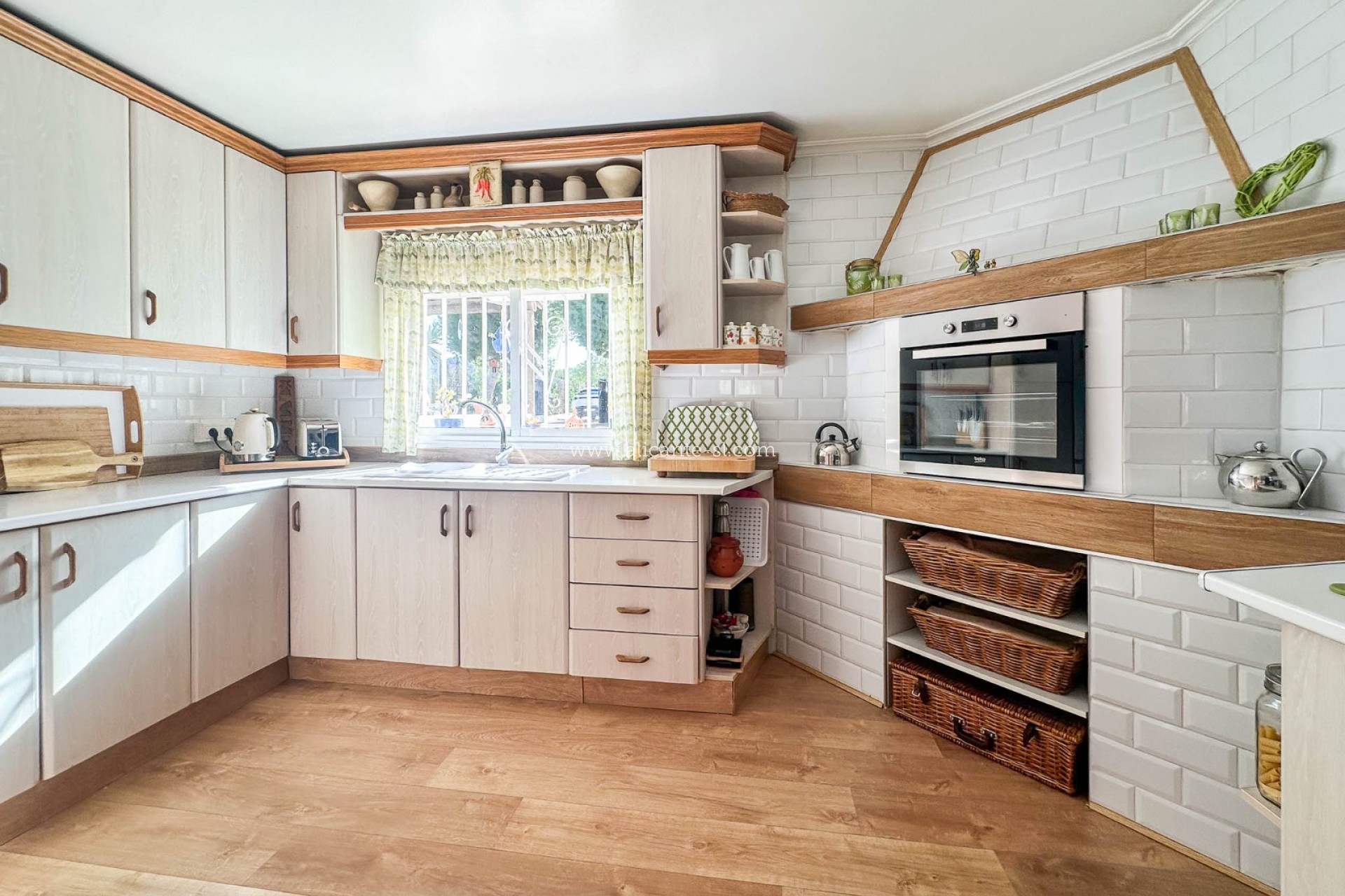 At the heart of the home is a spacious lounge-diner, centred around a pellet burner that adds warmth and character during the cooler months. This inviting living space flows naturally into a beautifully traditional country-style kitchen, perfectly suited to the style and setting of the property.