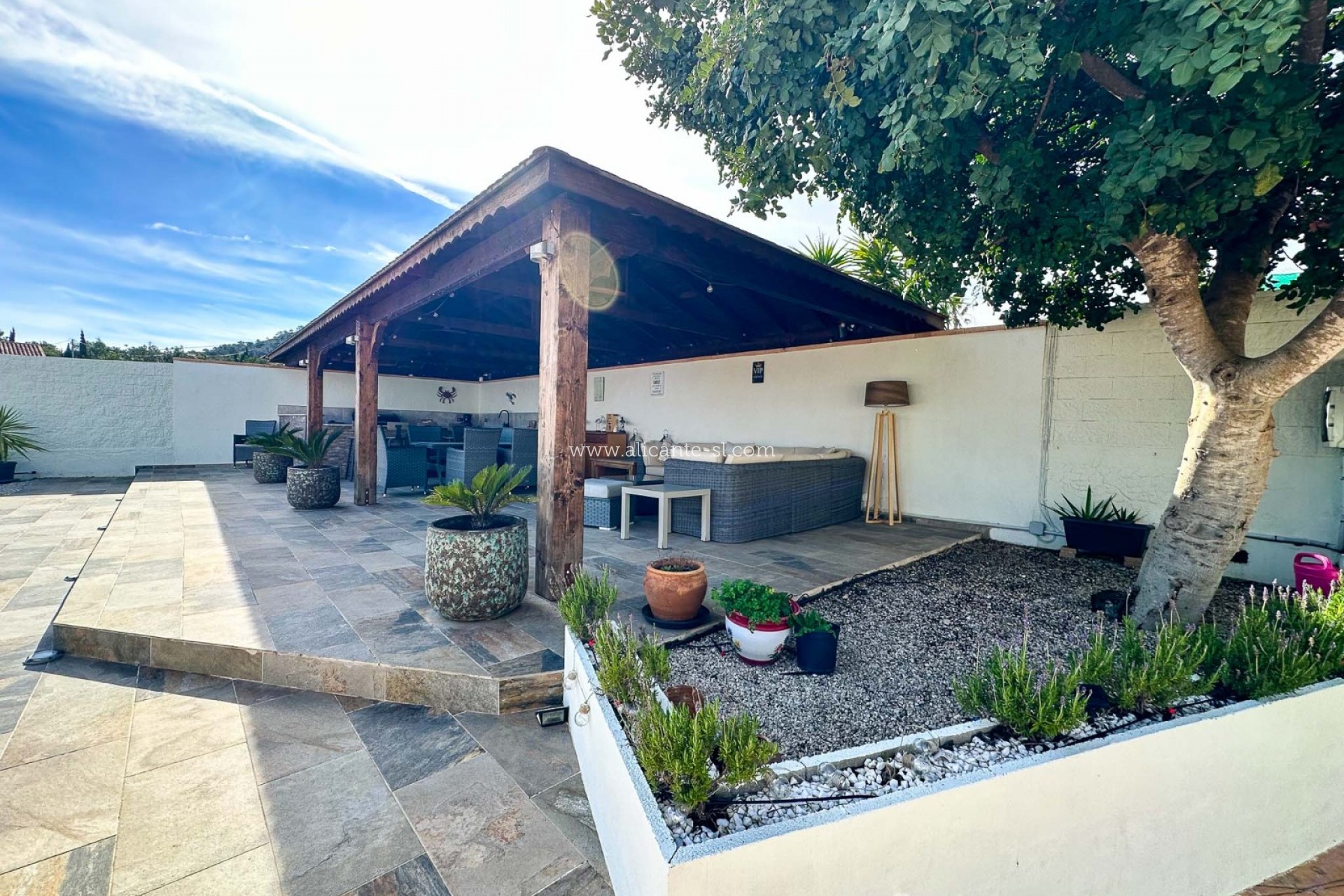 The villa offers an impressive build size of 226m² and sits on a fully walled and fenced plot of 1,660m². In addition, two further adjoining plots of 862m² and 675m² are included in the sale, bringing the total land size to an exceptional 3,197m². This not only enhances privacy but also offers flexibility for future use or investment potential.