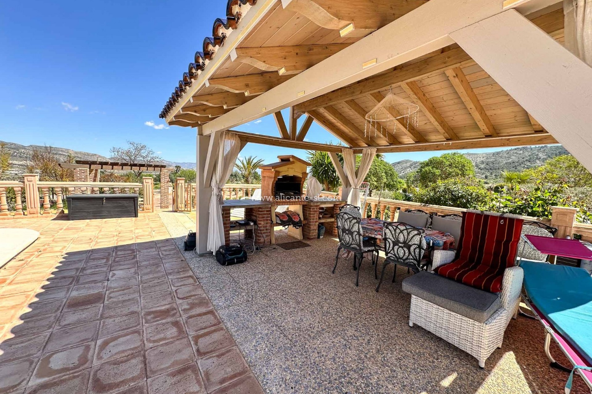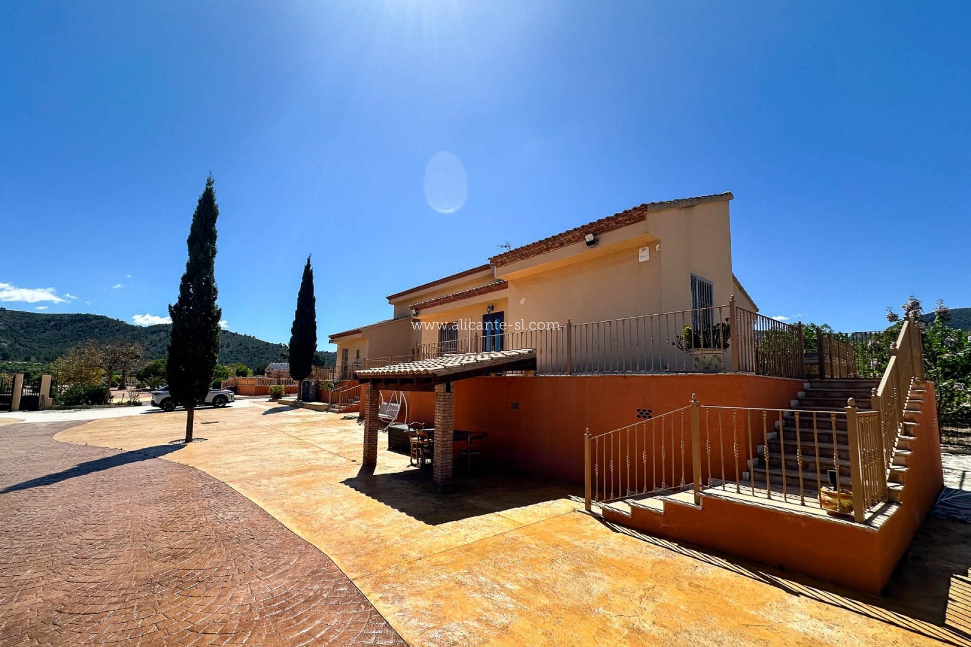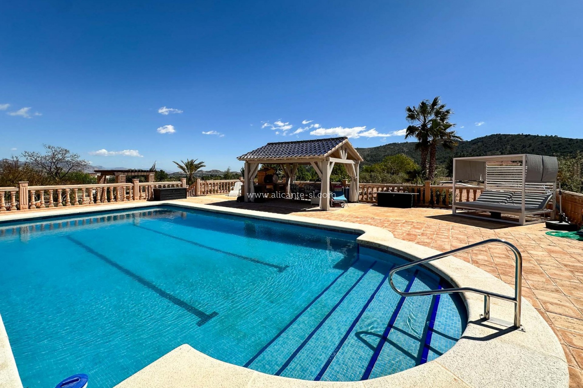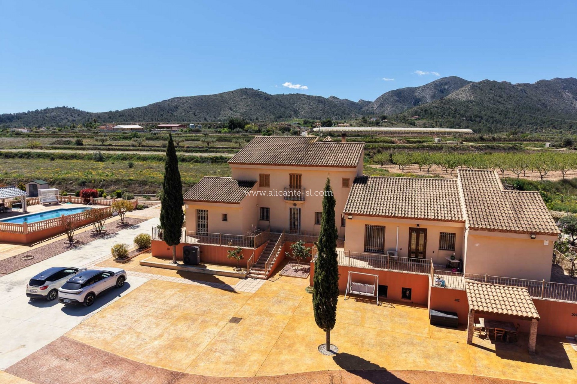 Ideally located, the villa offers excellent access to surrounding towns and key destinations, with La Romana just 2 minutes away, Hondón de las Nieves reachable in 8 minutes, Aspe in 12 minutes, and Alicante Airport within approximately 30 minutes.