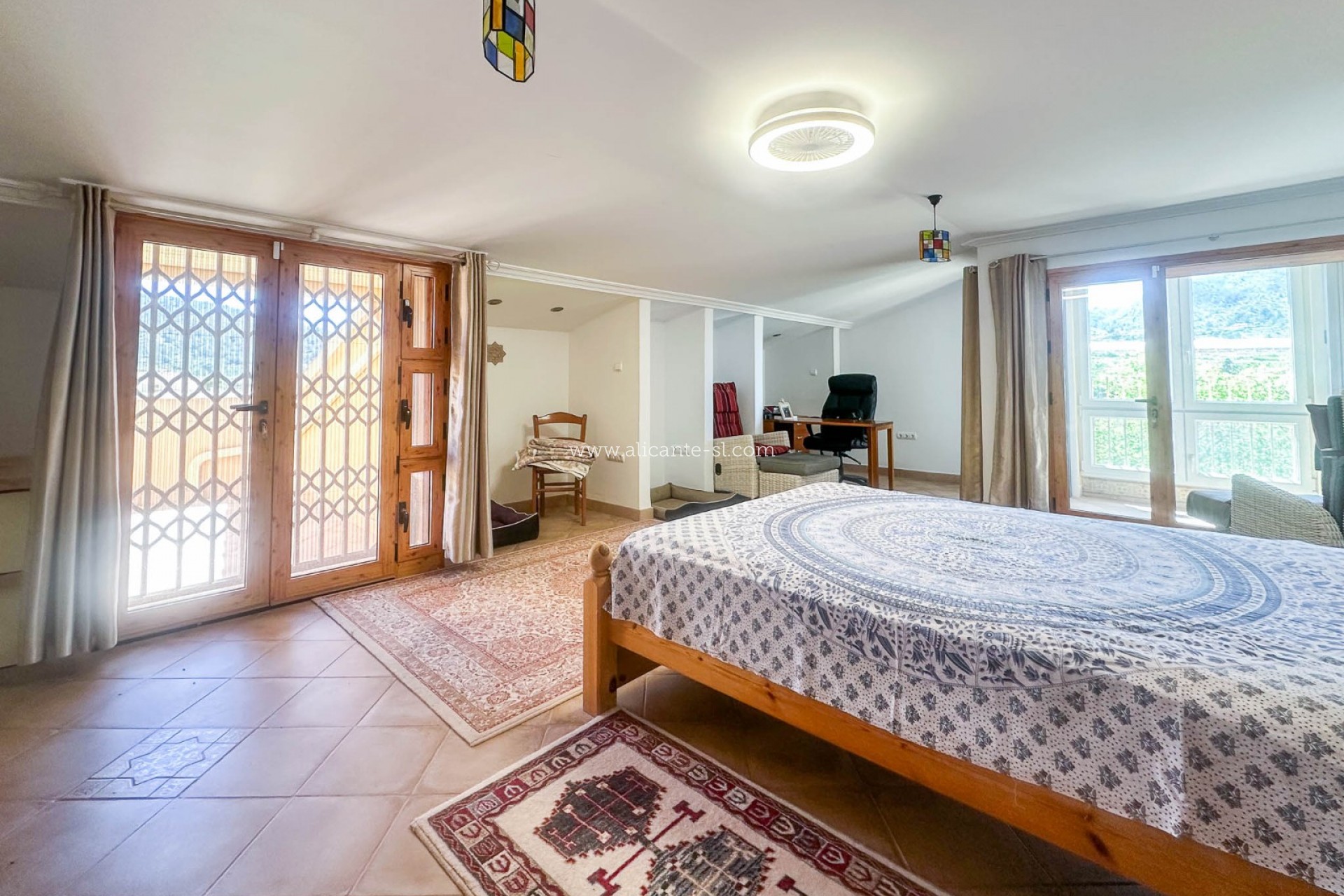Upstairs, the property continues to impress with two further bedrooms and a family bathroom, along with a truly exceptional master suite. This space has been designed with comfort and luxury in mind, featuring a substantial walk-in dressing room and access to a private balcony, where uninterrupted views of the surrounding mountains create a peaceful and scenic setting.